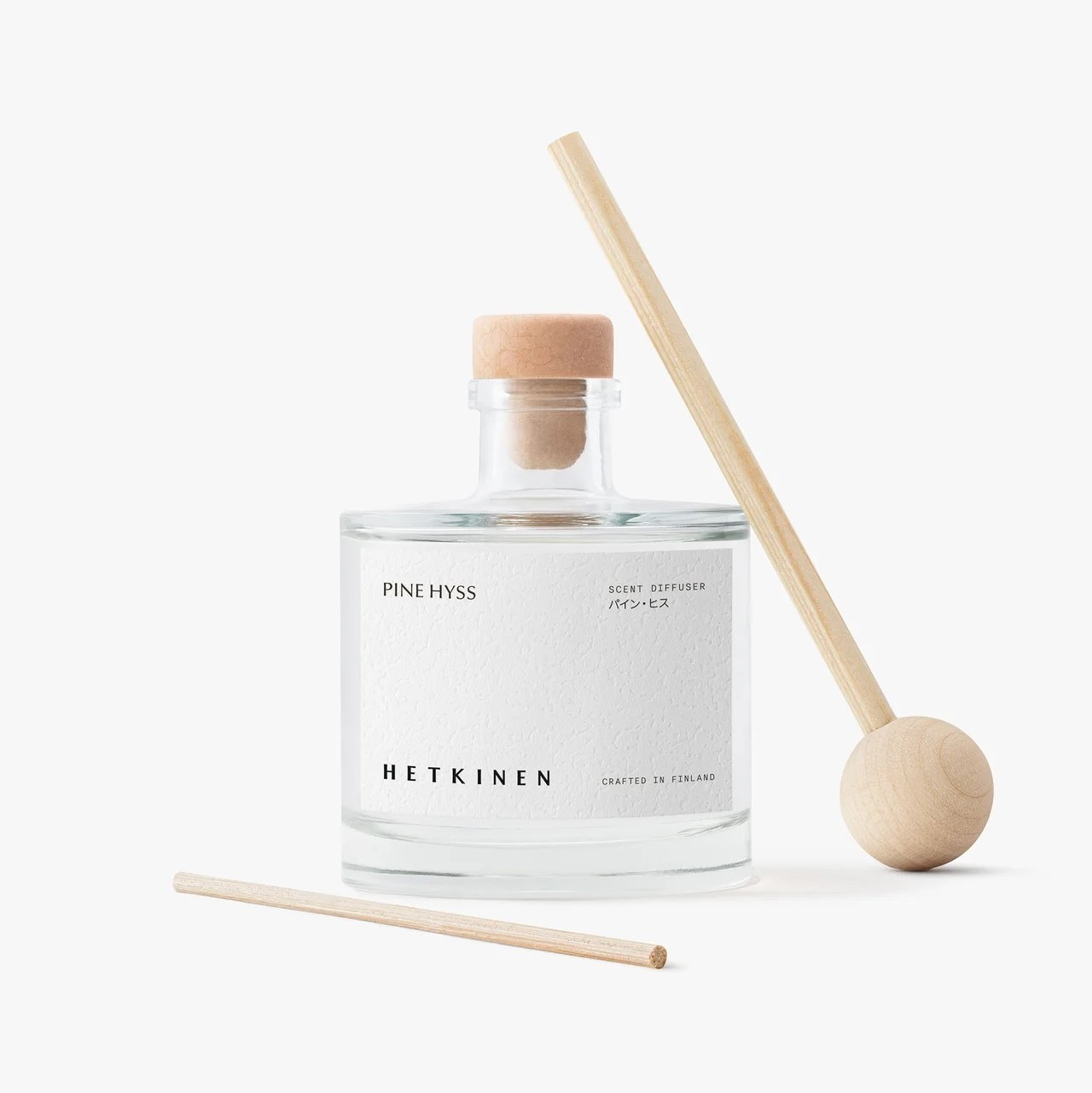 Dyfuzor zapachowy Pine Hyss 100 ml to naturalny zapach do wnętrz inspirowany spokojem i siłą fińskich lasów. Kompozycja łączy świeże, żywiczne nuty sosny i świerku z zieloną lekkością brzozy oraz ziemistym aromatem mchu i jałowca. Dzięki temu powstaje zapach jednocześnie świeży i głęboki – przywodzący na myśl chłodne powietrze wśród drzew i spokojną atmosferę nordyckiej natury.
