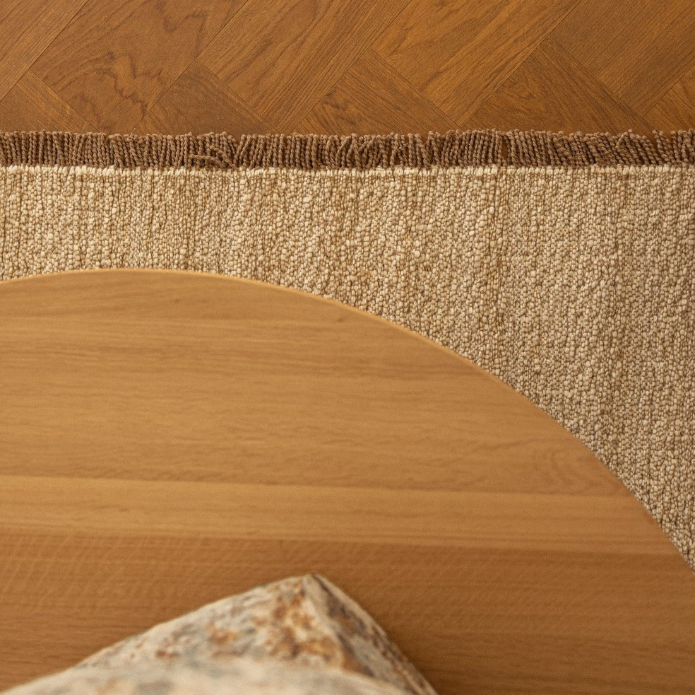 Nowoczesny dywan zaprojektowany przez renomowane studio projektowe Norm Architects dla duńskiej marki Linie Design. Ręcznie tkany dywan łączy elegancję i funkcjonalność, wprowadzając do wnętrza naturalne ciepło i harmonię. Wykonany w 100% z wełny nowozelandzkiej, o gęstości 2200 g/m² i wysokości runa 12 mm, zapewnia miękkość i trwałość na lata. Charakterystyczne frędzle, wykonane w 95% z wełny i 5% z juty, nawiązują do tradycyjnych bordiur japońskich mat tatami, nadając dywanowi subtelnej architektonicznej struktury.