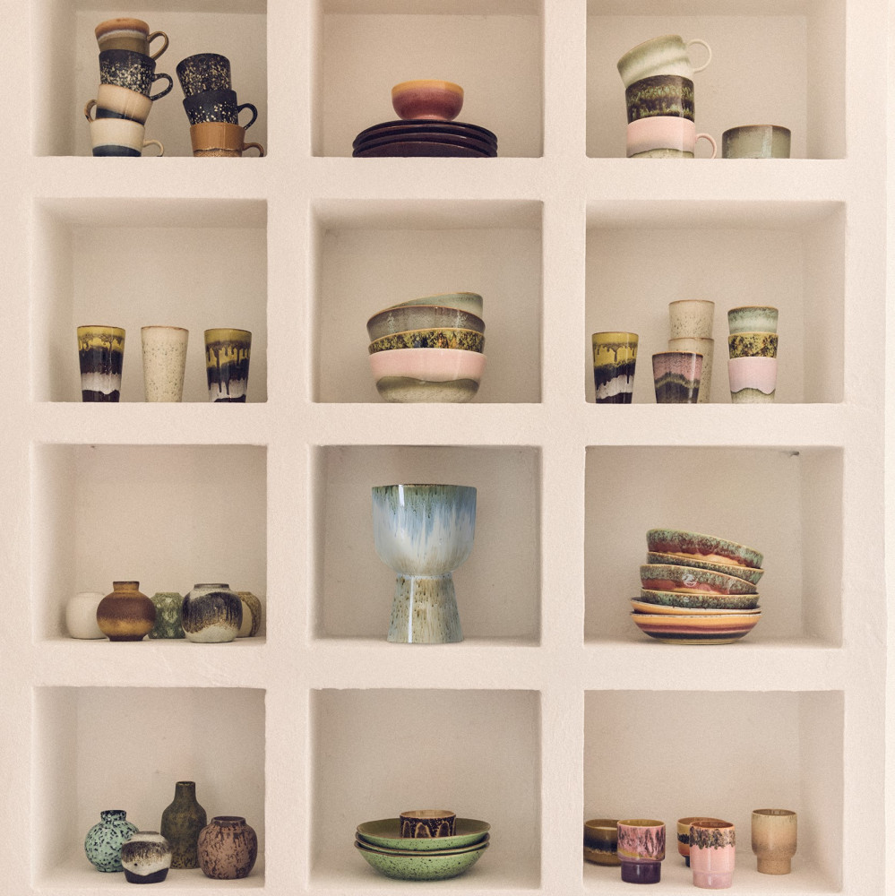 Rozkoszuj się ulubioną herbatą, dzięki ceramicznym kubkom z kolekcji 70s holenderskiej marki HKliving. Ta multikolorowa seria designerskich naczyń stylizowana jest modnym stylem z lat 70., a każdy z kubków wykonywany jest ręcznie z wysokiej jakości ceramiki do tego zdobiony w unikatowy wzór.