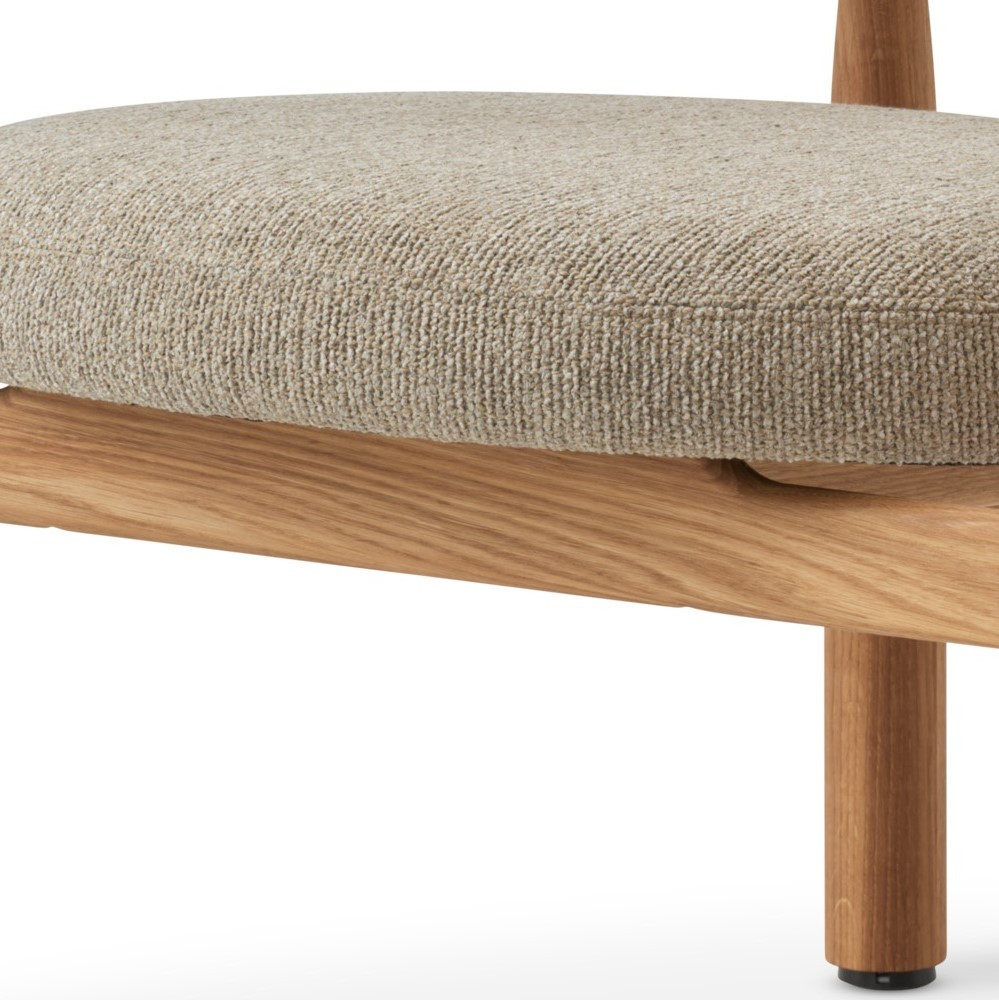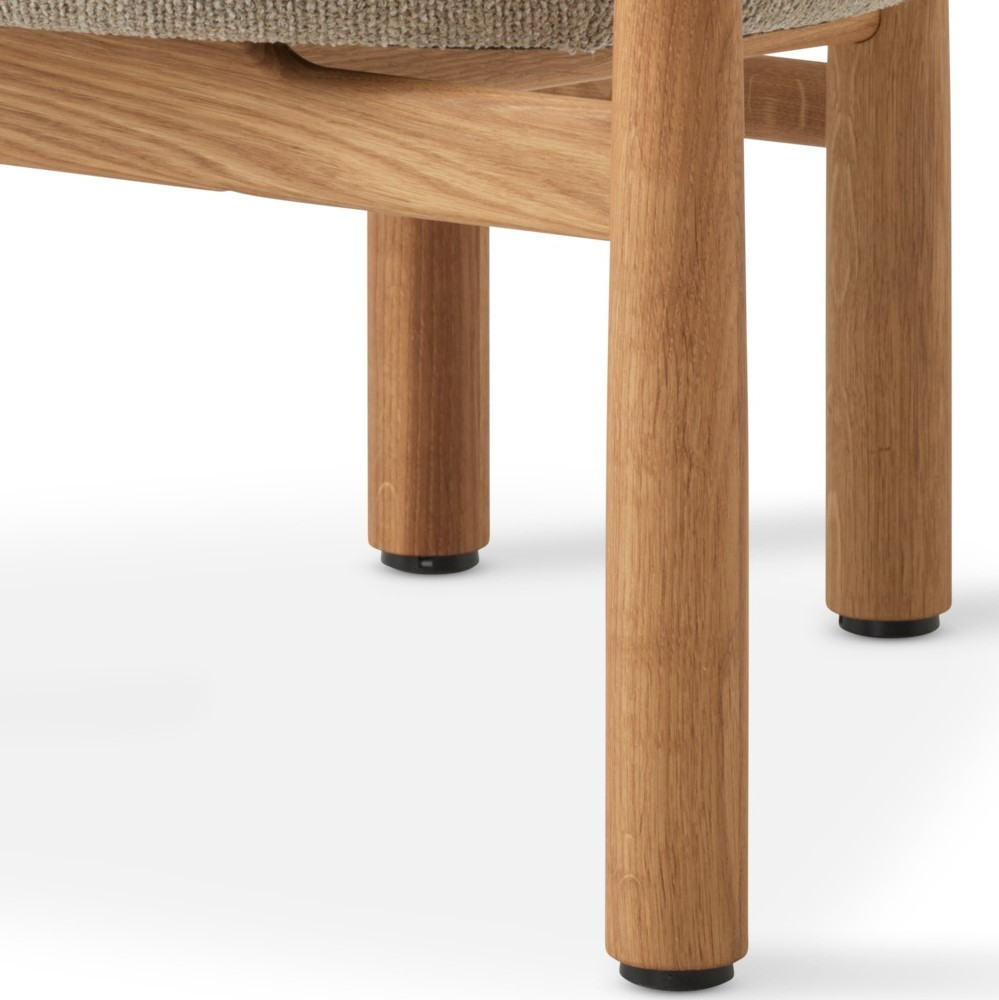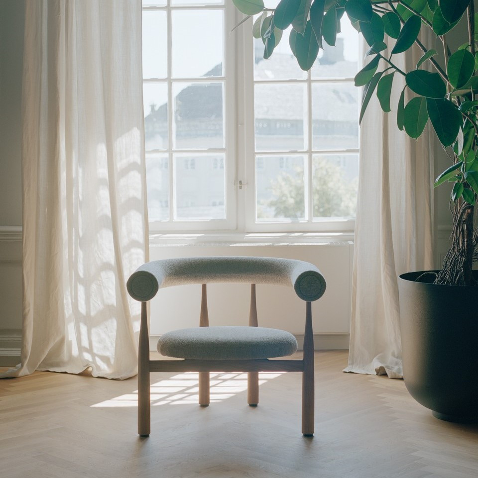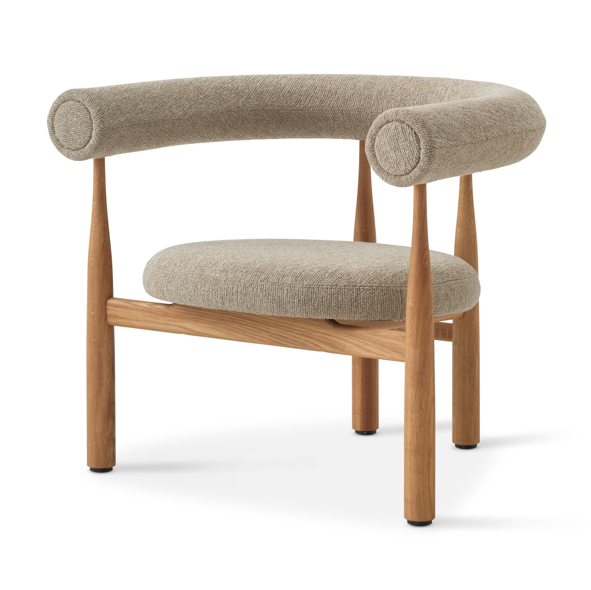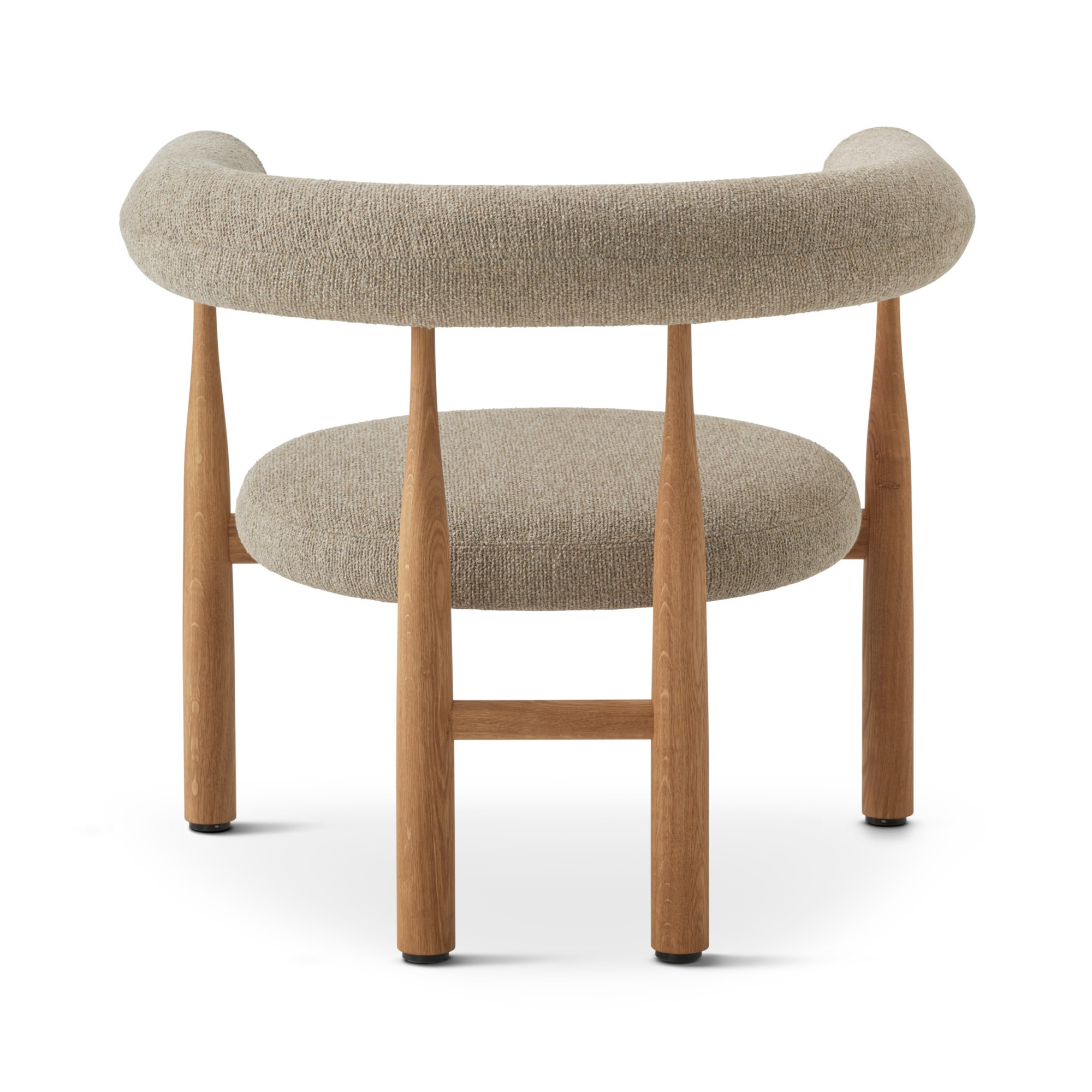 Bukowski Lounge Chair duńskiej marki New Works to nowoczesny fotel łączący precyzyjnie zaprojektowaną geometrię z komfortowym siedziskiem. Tapicerowane oparcie i obniżone siedzisko zapewniają ergonomię, a solidne drewno dębowe FSC® podkreśla trwałość i elegancję. Tkanina Sahco Moss 017 nadaje naturalny, ciepły odcień, kontrastujący z drewnianymi elementami. Smukłe nogi i proporcje fotela tworzą harmonijną, stabilną konstrukcję, która sprawdza się zarówno w salonie, jak i domowym biurze.
