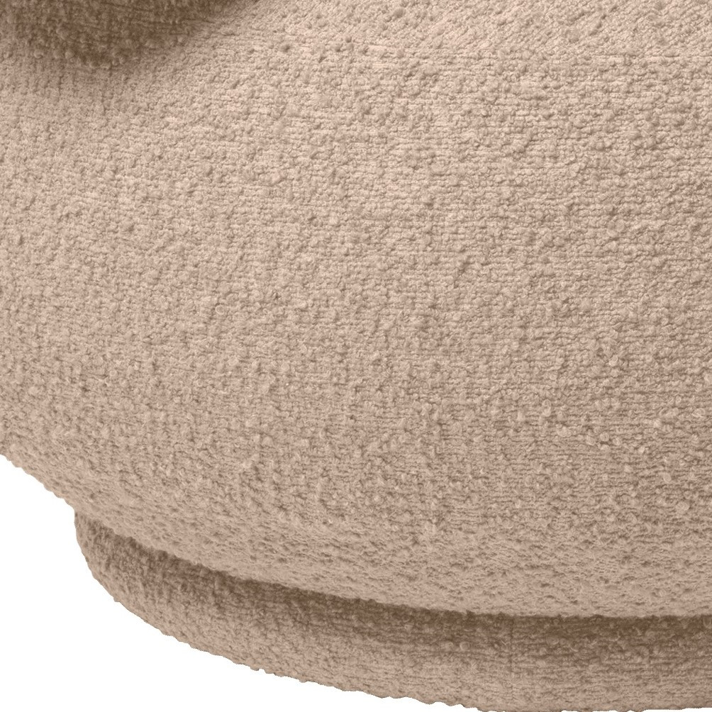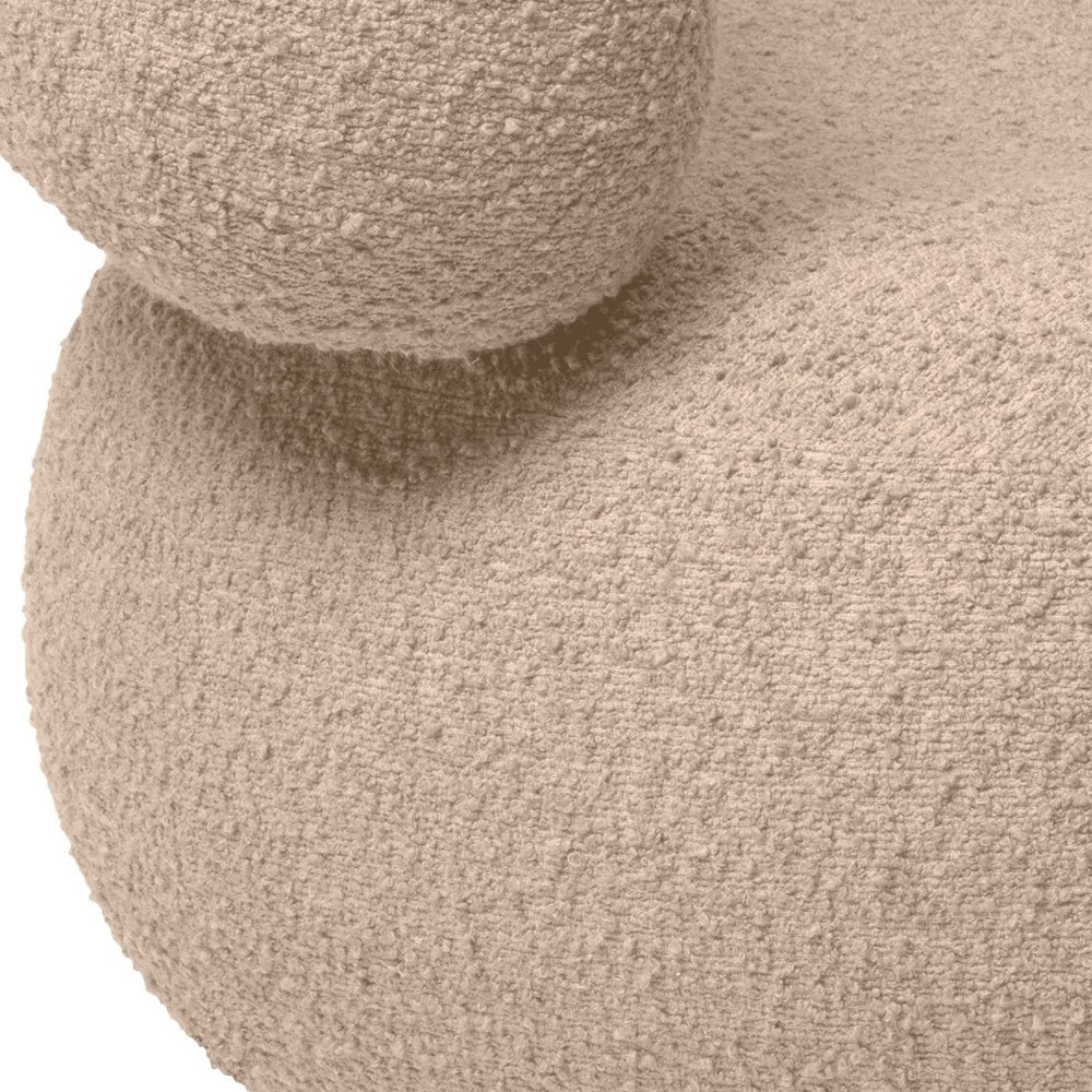 Model wykonany jest ręcznie w Europie i tapicerowany wysokiej jakości tkaniną bouclé w beżowym odcieniu, która wprowadza do wnętrza przytulność i spójność aranżacji. Konstrukcja oparta na drewnie z certyfikatem FSC™ oraz wypełnienie z pianki zapewniają trwałość i wygodę na co dzień.