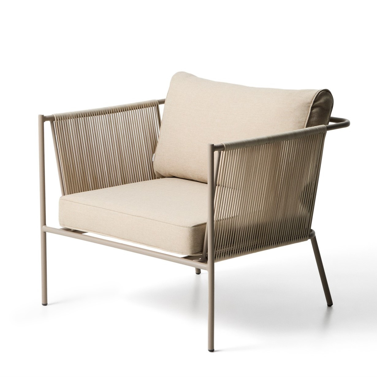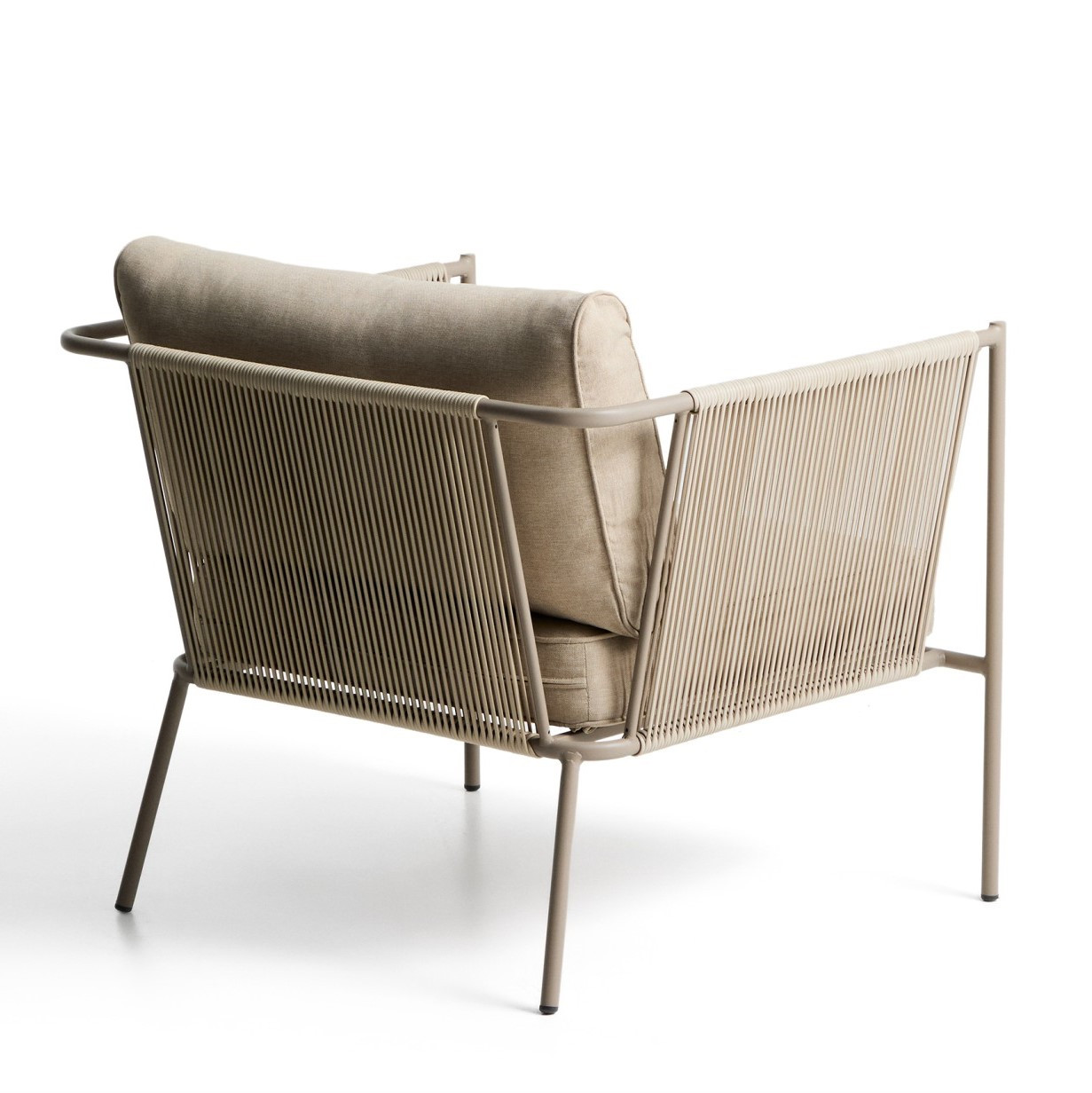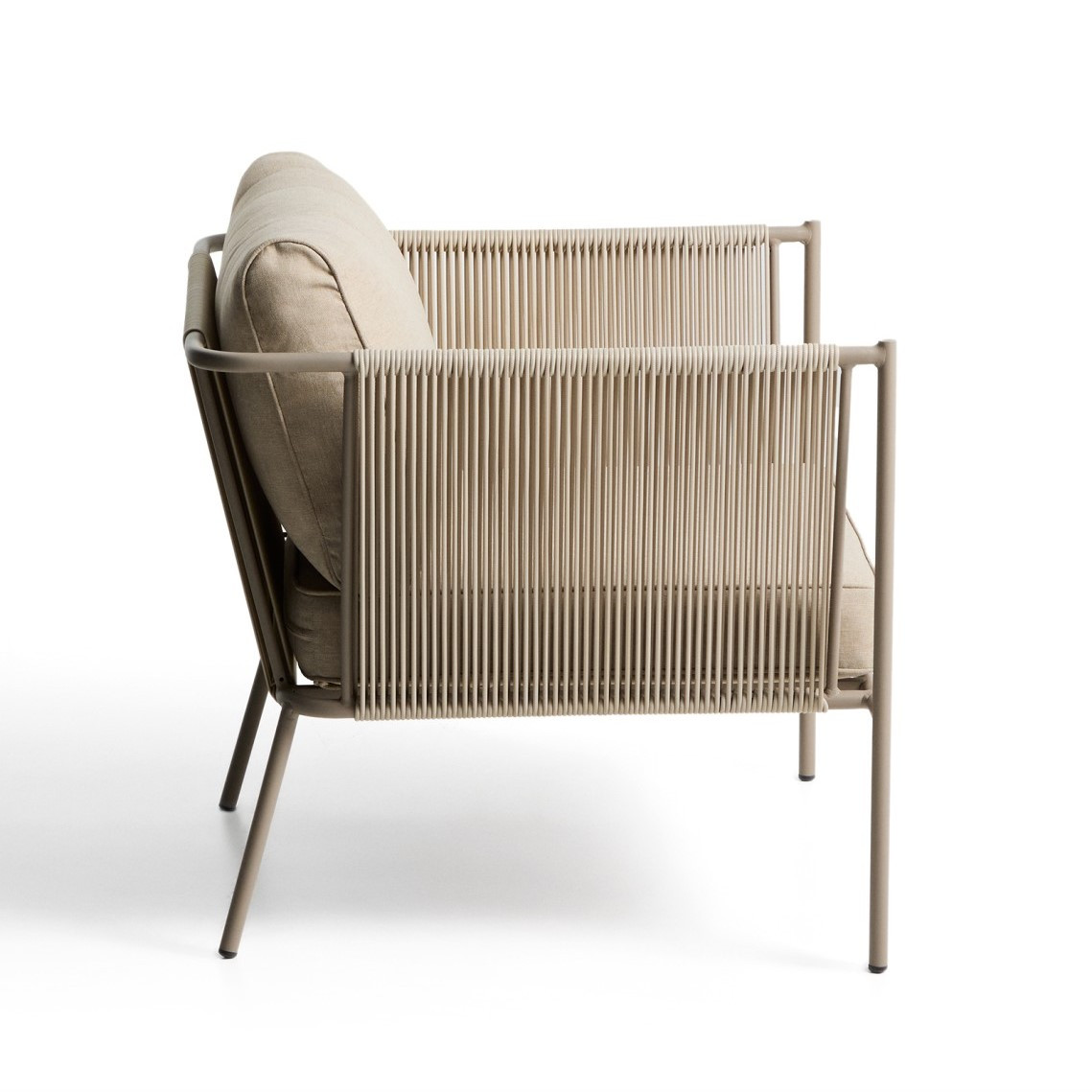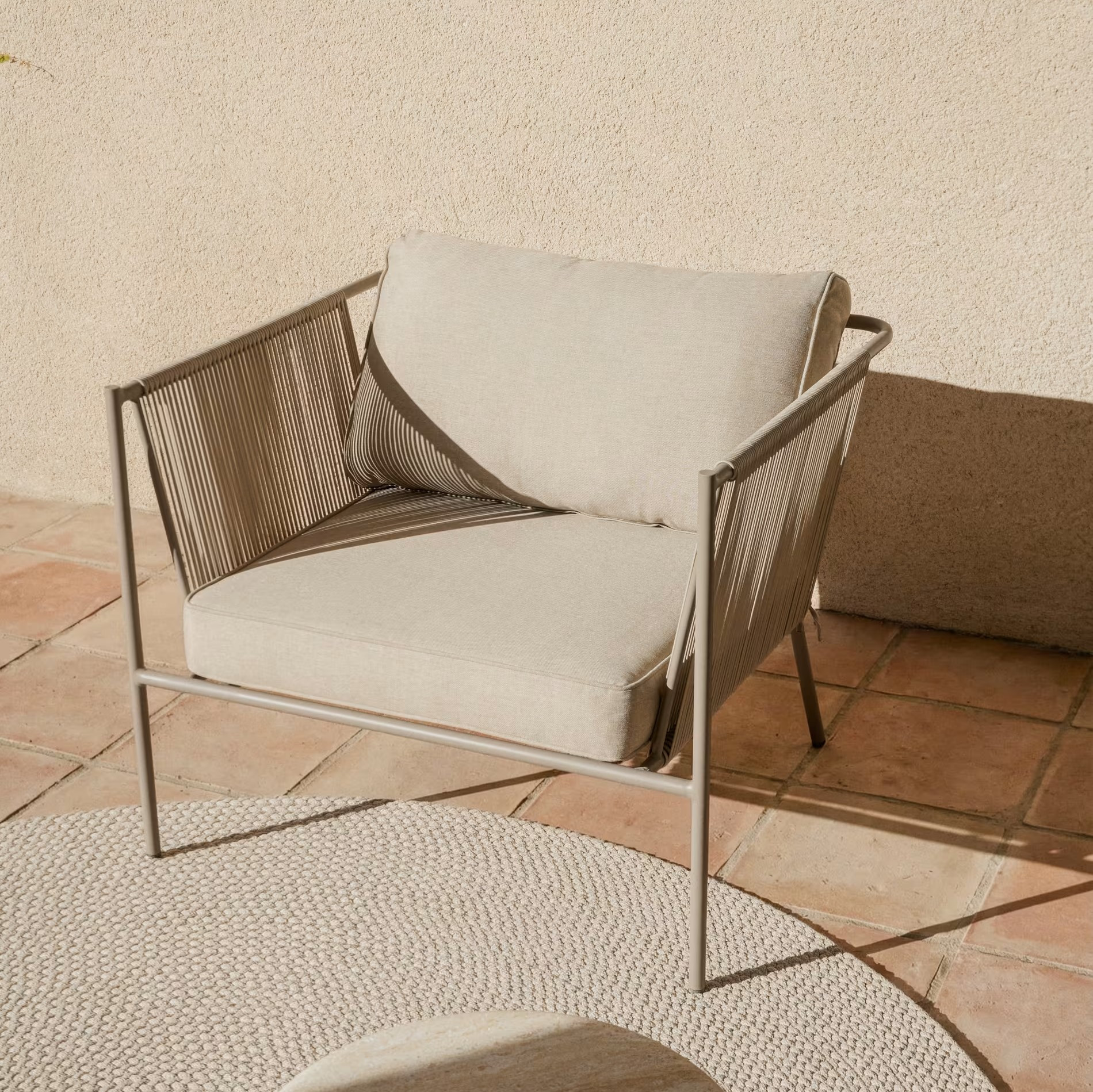 Fotel ogrodowy Kave Home Zivia to nowoczesne połączenie designu, trwałości i komfortu, stworzone z myślą o wymagających przestrzeniach outdoor i indoor. Minimalistyczna forma oraz stonowana kolorystyka ecru i taupe wpisują się w aktualne trendy aranżacyjne, idealnie uzupełniając taras, balkon, ogród czy nowoczesne wnętrza. Ręcznie pleciona lina syntetyczna nadaje konstrukcji lekkości i elegancji, a jednocześnie zapewnia wysoką odporność na działanie promieni UV oraz wilgoci.
