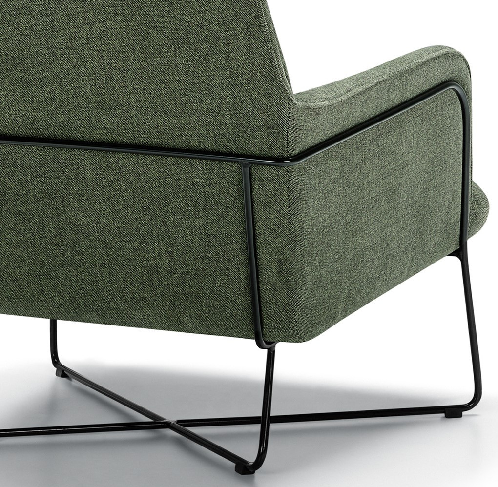 Szenilowa tapicerka w tkaninie Stipa Green wnosi do wnętrza naturalną świeżość i spokojną, organiczną energię, tworząc wyrazisty, ale harmonijny akcent kolorystyczny. Zielony odcień subtelnie ożywia przestrzeń i dobrze komponuje się z chłodną, metalową podstawą, dzięki czemu fotel sprawdza się zarówno w nowoczesnych, jak i bardziej eklektycznych aranżacjach.