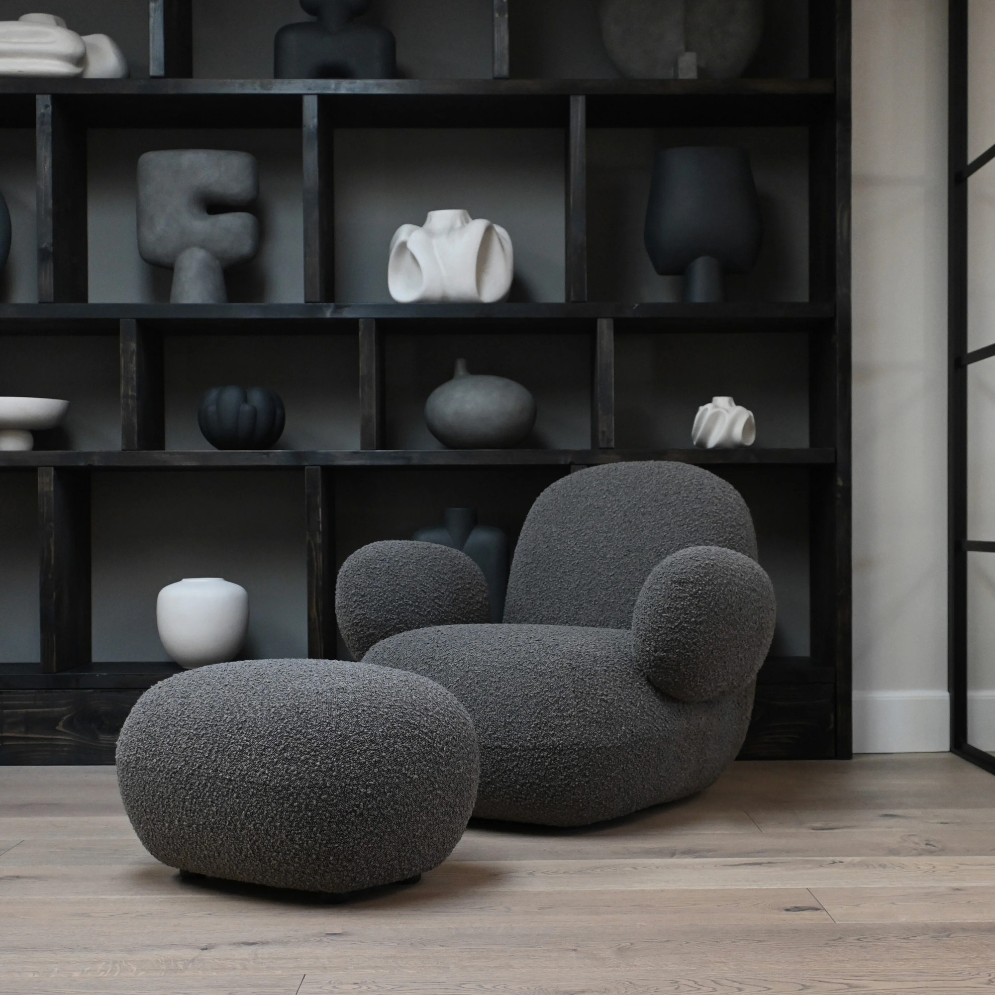 Odkryj Toe Flat – hołd dla futurystycznego designu lat 70., teraz w nowoczesnej, w pełni tapicerowanej odsłonie. Jego wyrazista sylwetka przyciąga wzrok, a gruba i miękka tapicerka Bouclé otula ciało, zapewniając maksymalny komfort. Bezszwowe połączenia elementów tworzą minimalistyczną, a jednocześnie volumetryczną formę, która staje się artystycznym centrum wnętrza.
