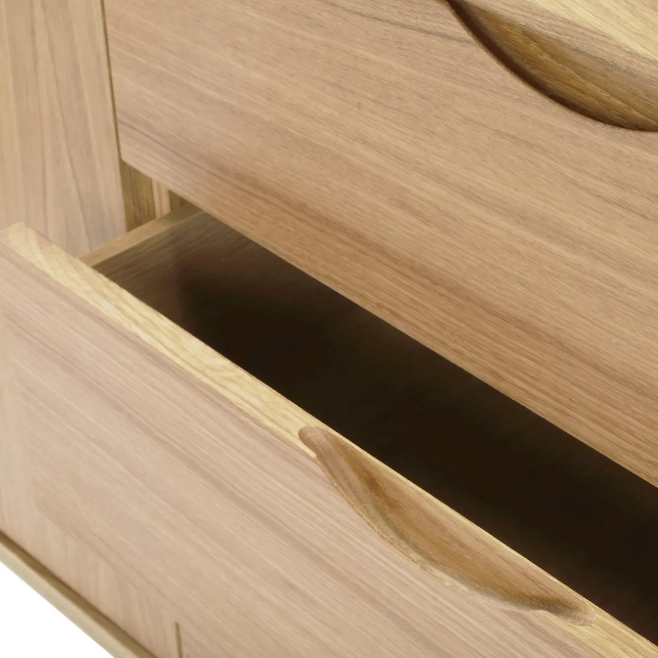 Dębowa komoda Filippa to stylowy mebel inspirowany skandynawskim designem, łączący elegancję i funkcjonalność. Wyposażona w dwie pojemne szafki oraz trzy szuflady z systemem cichego domykania, zapewnia wygodne i estetyczne przechowywanie. Regulowane półki pozwalają dopasować wnętrze komody do indywidualnych potrzeb.