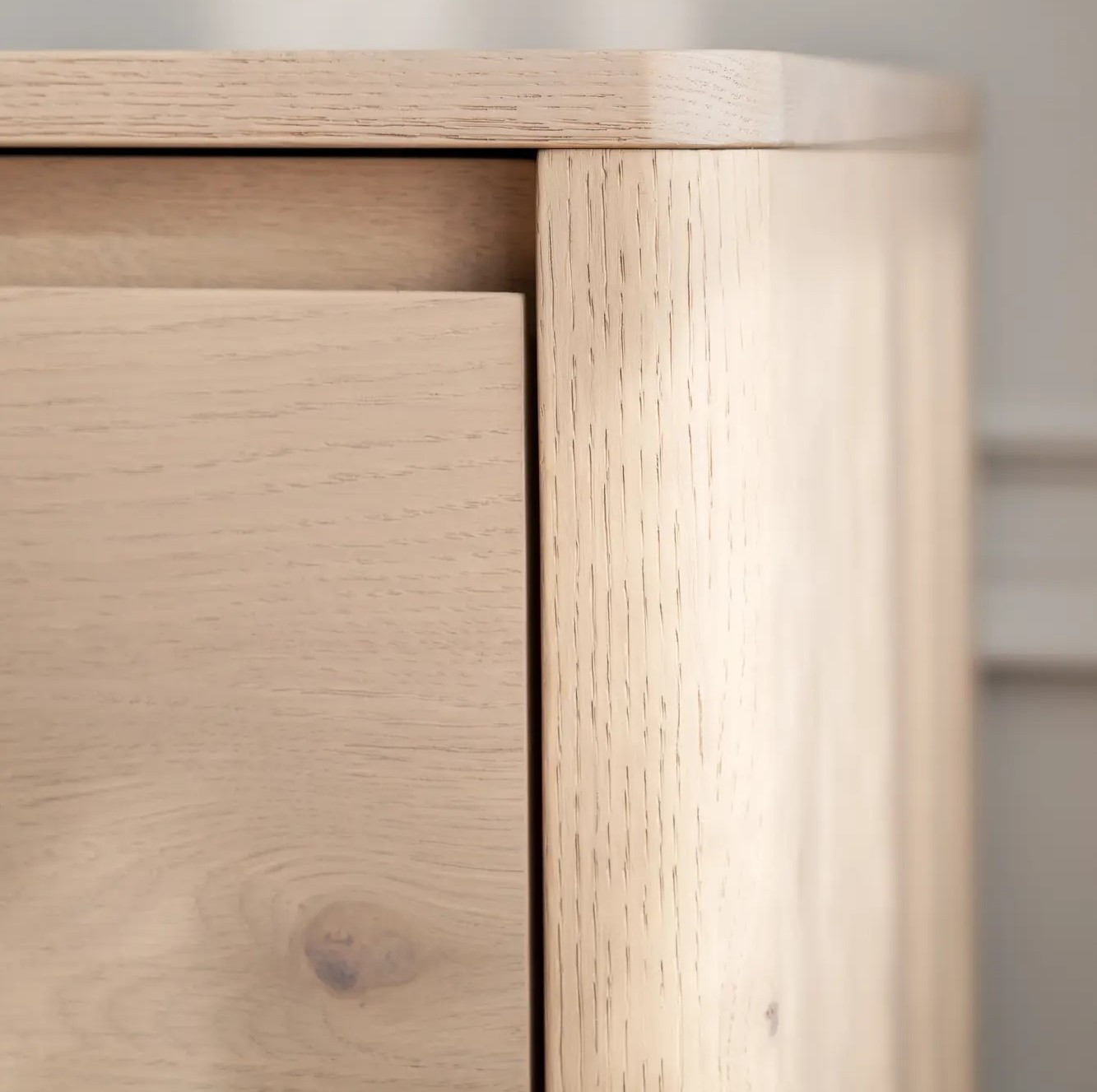 Komoda Melstone szwedzkiej marki Rowico Home to połączenie naturalnego uroku i nowoczesnego wzornictwa w najczystszej, skandynawskiej formie. Wykonana z bielonego dębu z certyfikatem FSC®, urzeka subtelnym wybarwieniem i unikalnym usłojeniem drewna – front wykonany z jednego kawałka deski tworzy harmonijną, spójną całość. Delikatnie zaoblone krawędzie, frezowane uchwyty z litego dębu i lekko uniesiona podstawa nadają jej lekkości i elegancji.