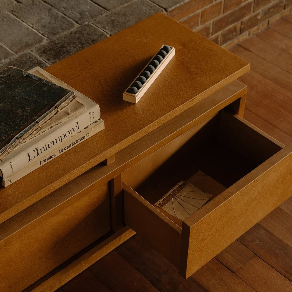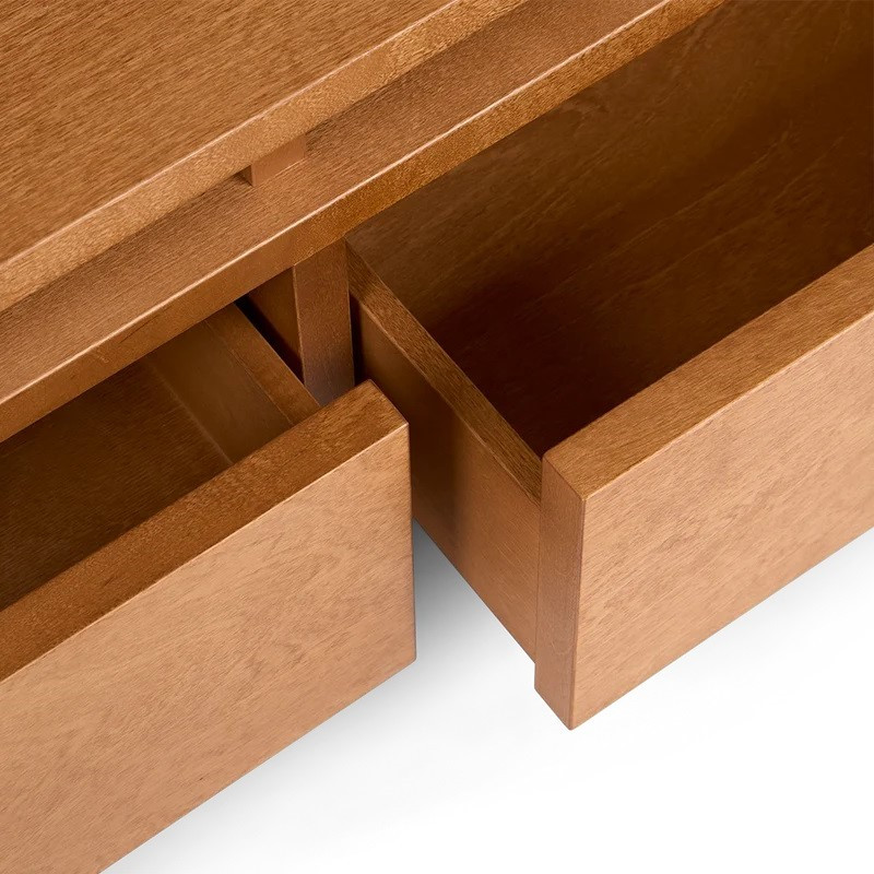 Ratio Console duńskiej marki Frama to wyjątkowy mebel z kolekcji Ratio, zaprojektowany z myślą o harmonii między estetyką a praktycznością. Jego niska forma i wyważone proporcje nadają przestrzeni lekkość, a trzy szuflady otwierane dotykiem zapewniają wygodne miejsce na rzeczy, które chcesz mieć pod ręką, lecz poza zasięgiem wzroku. Dyskretna półka ukryta w górnej części mebla dodaje funkcjonalności i subtelnego uroku. Wykonany z MDF-u, forniru i litej brzozy, wykończony w ciepłym odcieniu Warm Brown idealnie komponuje się z nowoczesnymi i klasycznymi wnętrzami.