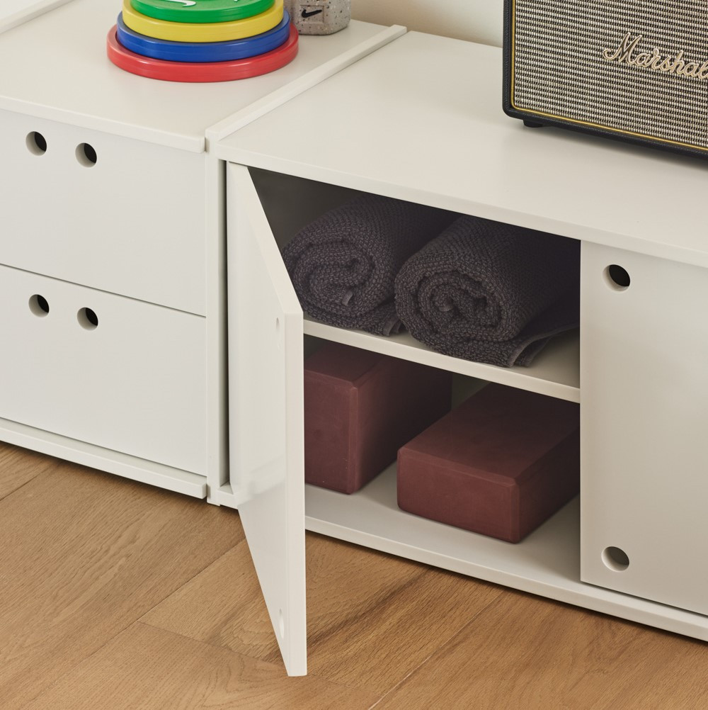 Komoda TV Wally sprawdzi się jako funkcjonalny mebel pod telewizor w salonie, oferując pojemną przestrzeń do przechowywania w czystej, nowoczesnej formie, jednocześnie wpisując się w minimalistyczne, współczesne wnętrza.