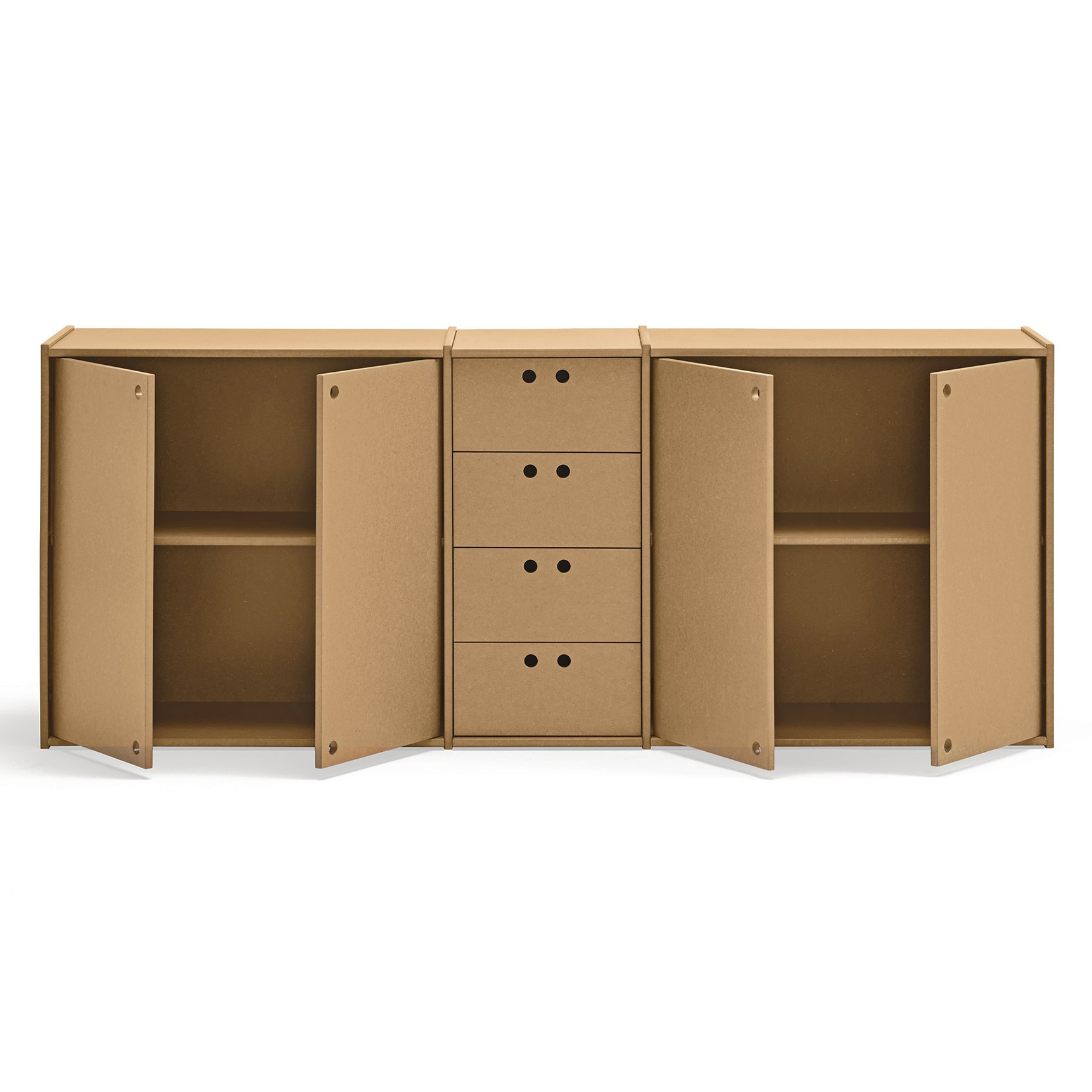 Komoda z kolekcji Wally hiszpańskiej marki Teulat to nowoczesny mebel do przechowywania zaprojektowany w duchu funkcjonalnego minimalizmu. Korpus wykonano z trwałej płyty MDF, zapewniającej stabilność konstrukcji i precyzyjne wykończenie powierzchni; wykończenie Natural ma surową, matową estetykę będącą świadomym elementem projektu i podkreślającą minimalistyczny charakter mebla. Komoda posiada zamknięte szafki z wewnętrznymi półkami, które umożliwiają uporządkowane przechowywanie naczyń, dokumentów lub akcesoriów domowych.