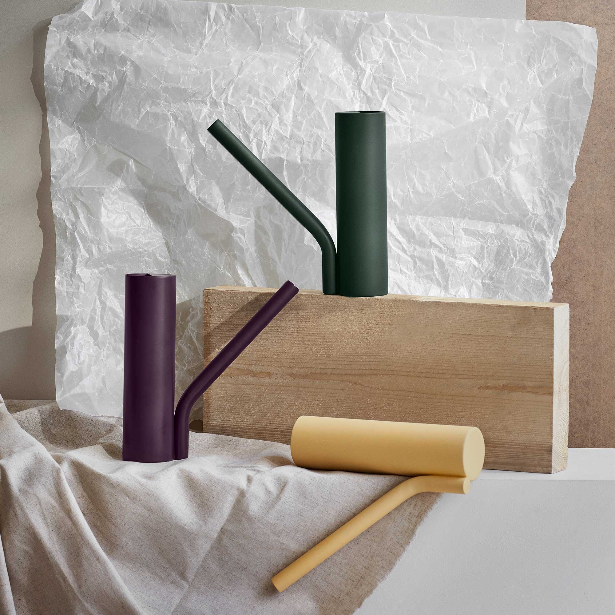 Wykonana z trwałej stali nierdzewnej, Grab ma nowoczesny, minimalistyczny design. Forma z dwóch połączonych cylindrów płynnie przechodzi w podstawę wylewki. Dostępna w kolorach śliwkowym, ciemnozielonym i jasnożółtym, pełni też rolę stylowego dodatku we wnętrzu.