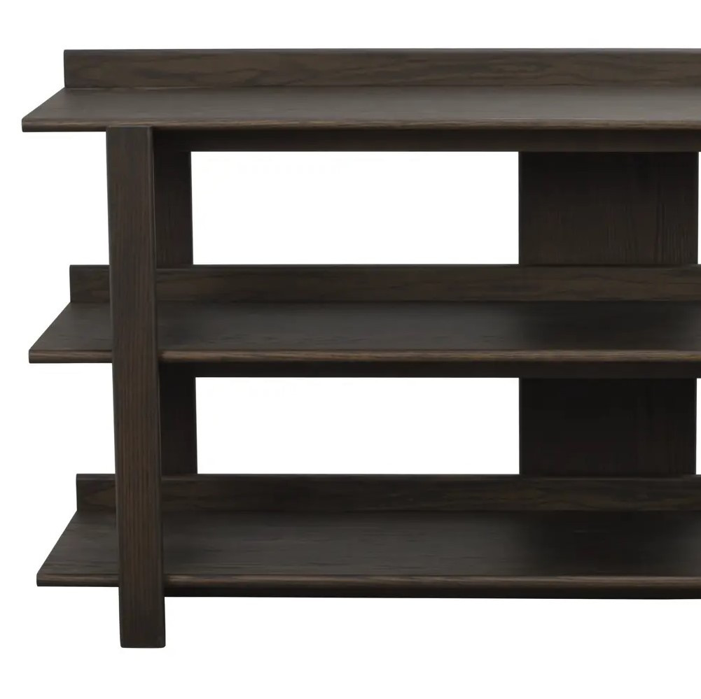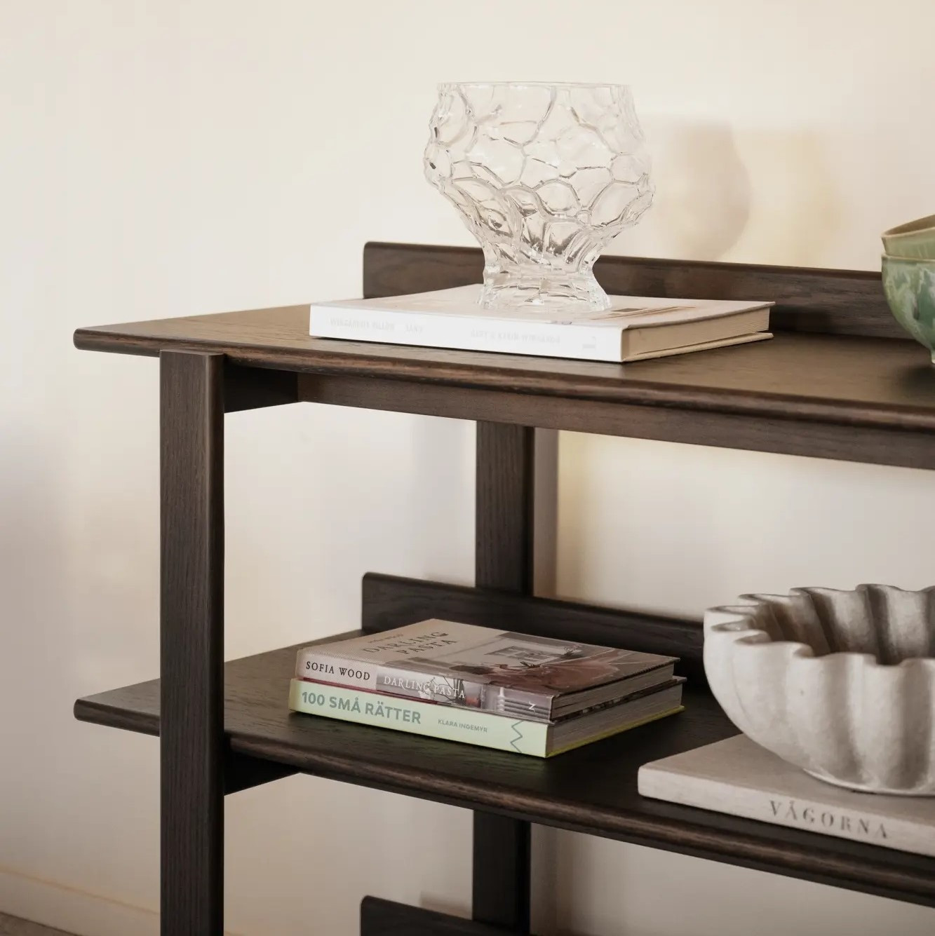 Konsola Kilian wyróżnia się lekką, minimalistyczną konstrukcją inspirowaną skandynawskim designem. Brązowe wybarwienie drewna nadaje wnętrzu głębi i elegancji, podkreślając jego naturalny charakter, a prosta forma sprawia, że mebel nie dominuje aranżacji, tylko ją subtelnie uzupełnia.