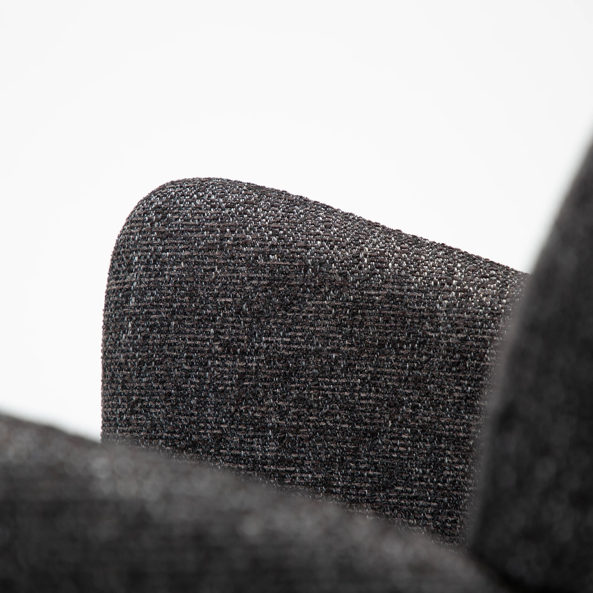 Krzesło tapicerowane w całości od siedziska po nogi co tworzy spójną, luksusową bryłę. Wypełnienie z pianki w oparciu, podłokietnikach i siedzisku zapewnia wysoki komfort użytkowania. Stabilna, metalowa konstrukcja gwarantuje trwałość, a certyfikat FSC™ podkreśla ekologiczny charakter produktu.