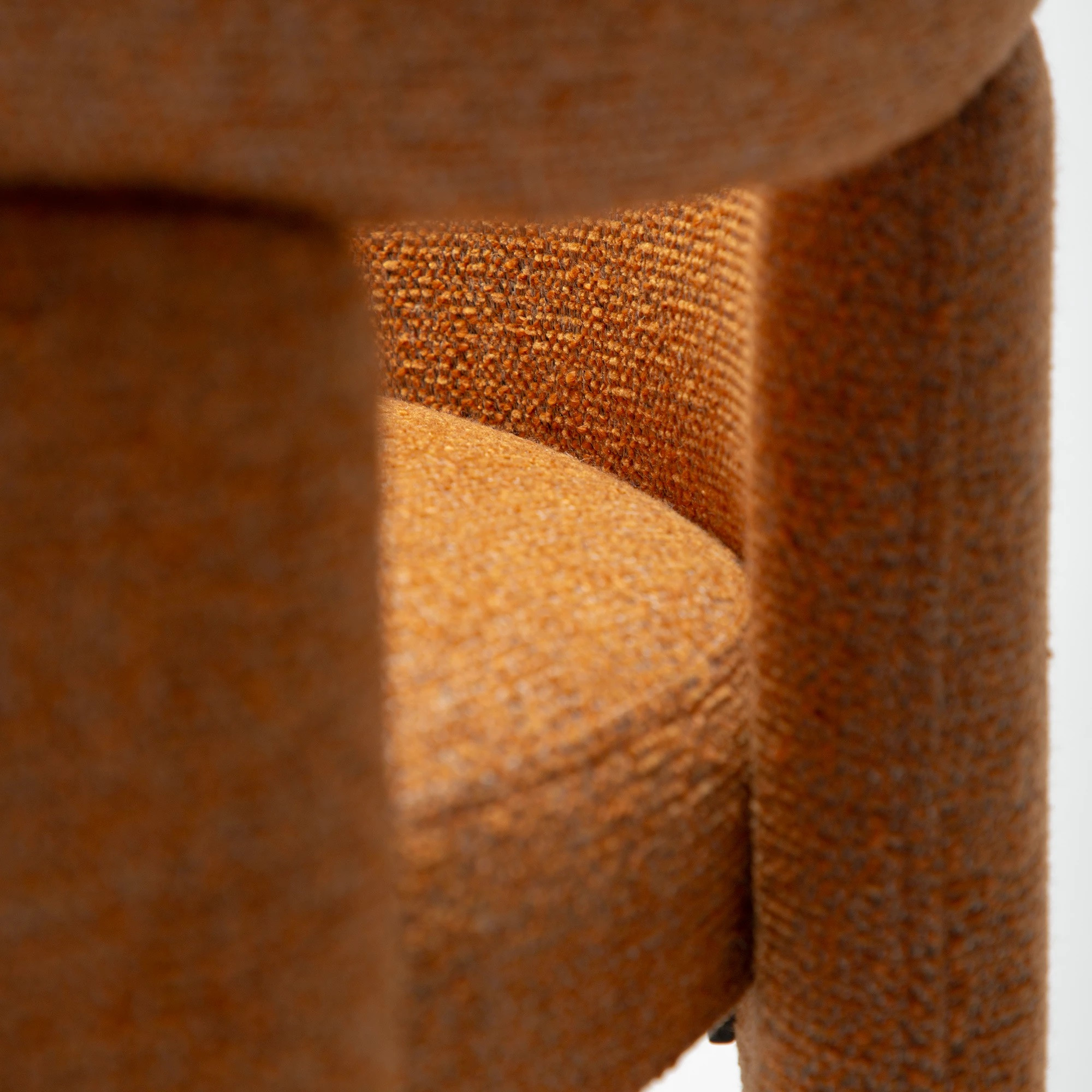 Krzesło Aole duńskiej marki Dan-Form to designerskie krzesło tapicerowane, które łączy skandynawski minimalizm z nowoczesną elegancją. Jego rzeźbiarska forma sprawia, że świetnie sprawdzi się jako krzesło do jadalni, salonu lub stylowego biura. Krzesło wykonano w modnej tkaninie bouclé w modnym kolorze rdzawo-pomarańczowym – miękkiej, przyjemnej i niezwykle efektownej wizualnie.