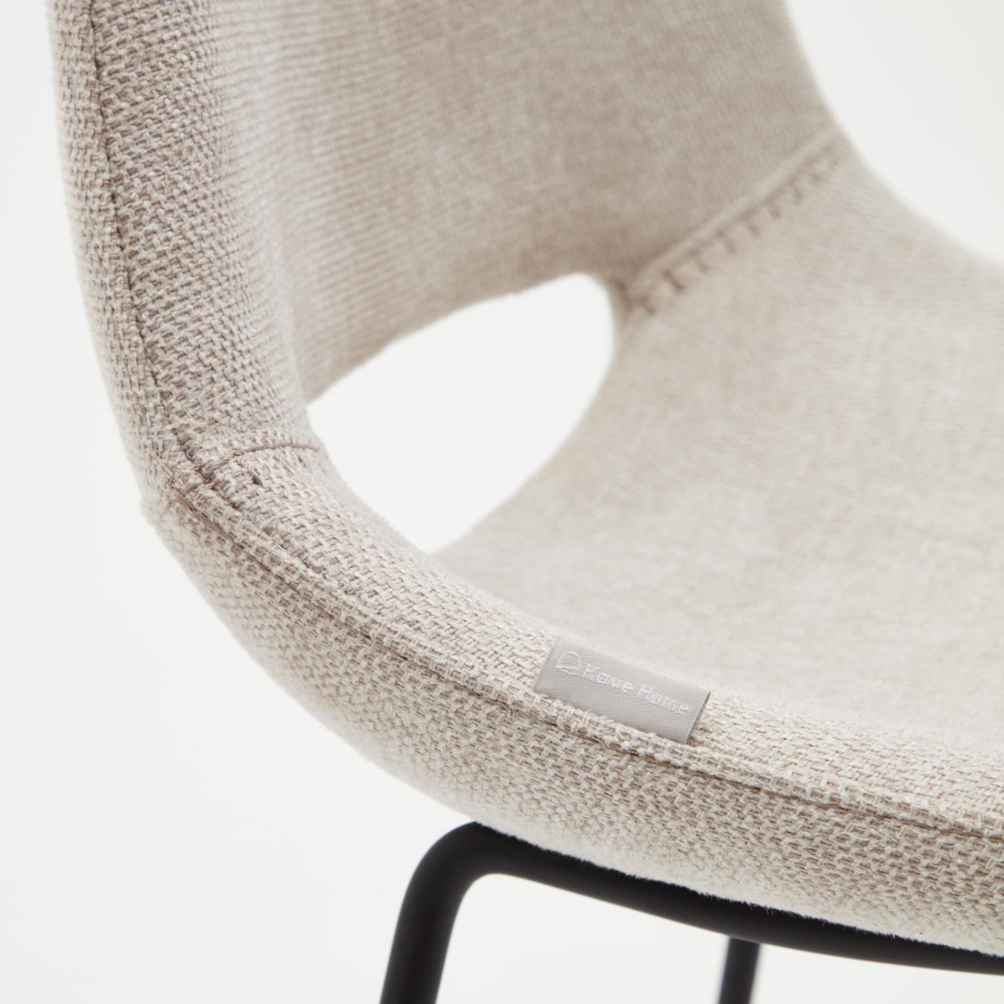 Krzesło ma wysokość 65?cm, szerokość 41?cm i głębokość 40?cm, obsługuje do 130?kg, dzięki czemu łączy funkcjonalność z elegancją. Beżowa tapicerka i czarne detale wprowadzają subtelną, nowoczesną estetykę, łatwo komponując się z wnętrzami w różnych stylach. Produkt jest częścią kolekcji Zahara, co pozwala tworzyć spójne zestawy meblowe.
