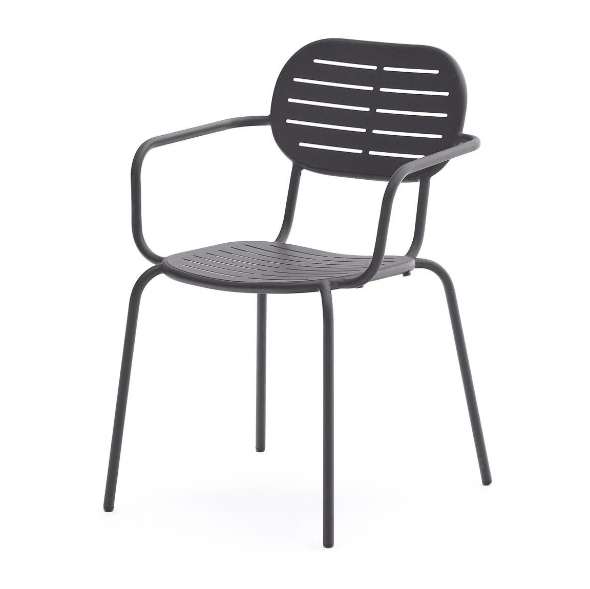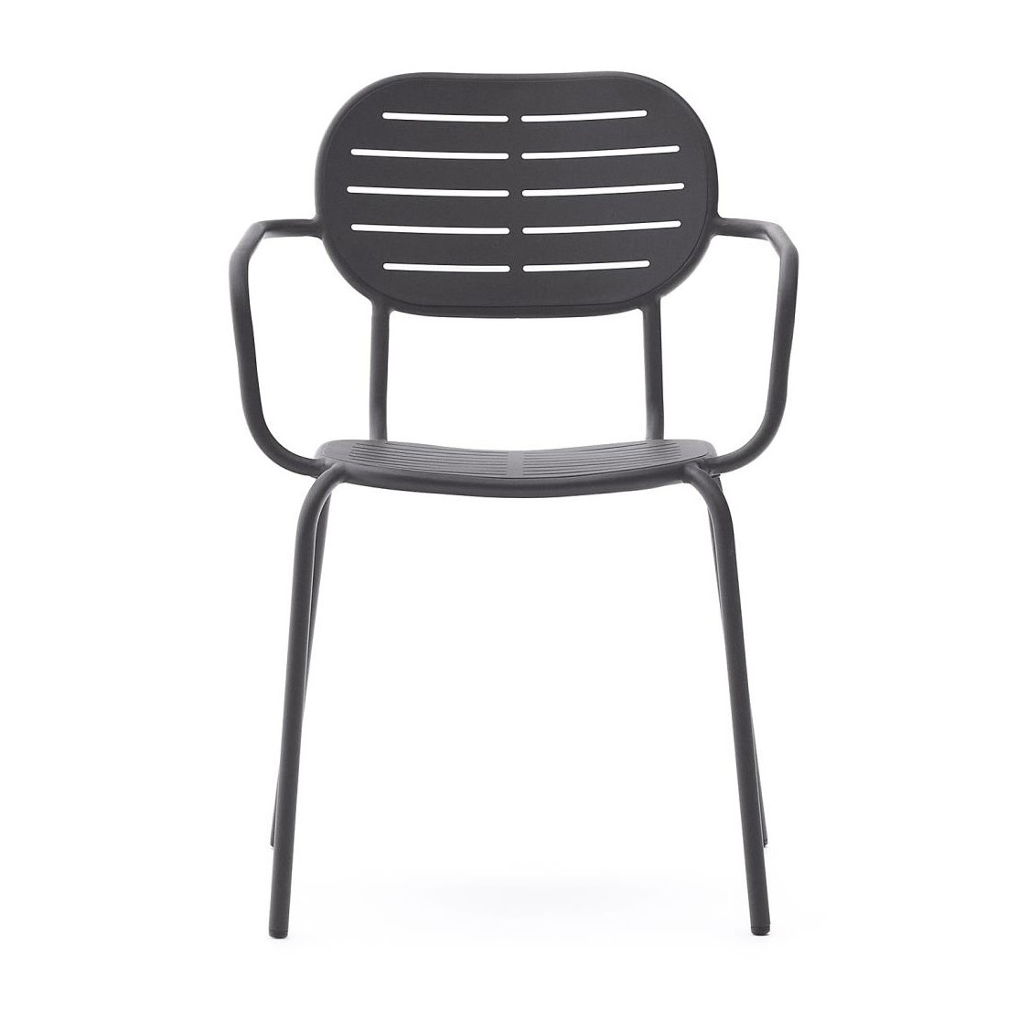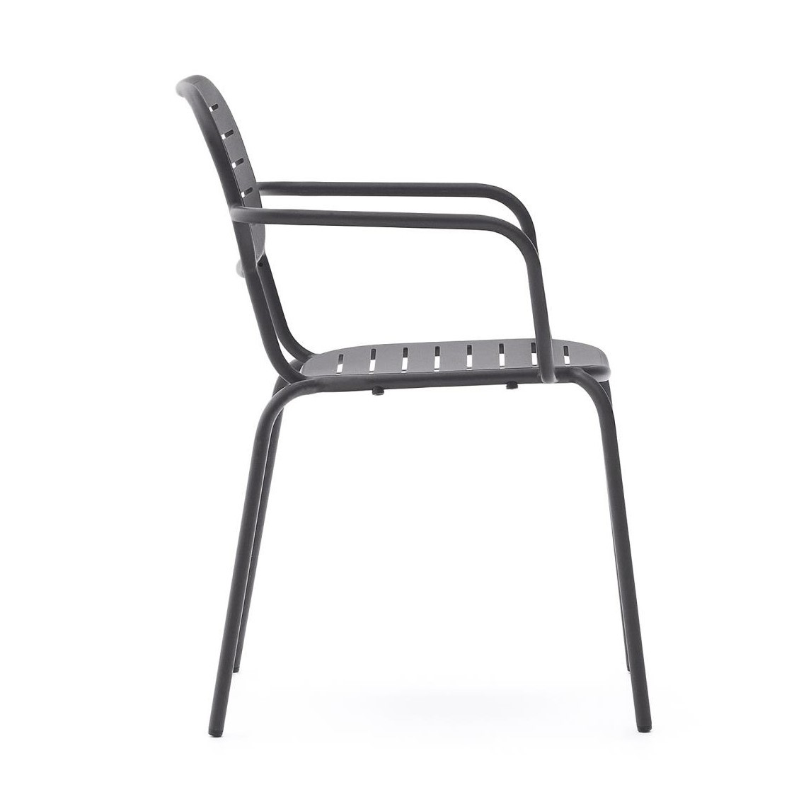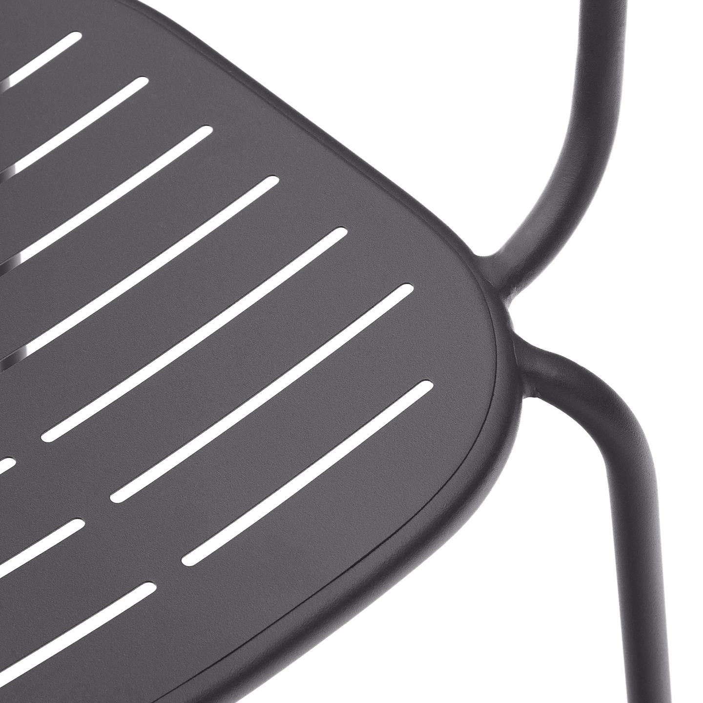 Krzesło ogrodowe z kolekcji Bari hiszpańskiej marki La Forma. Połączenie minimalistycznego designu z funkcjonalnością. Idealne rozwiązanie, aby nadać balkonom i ogrodom styl i charakter w prostym, nowoczesnym wydaniu. Szczeliny na siedzisku i oparciu z praktycznego punktu widzenia sprawdzają się podczas deszczu (otwory pozwalają na swobodny przepływ wody, która nie tworzy na siedziskach krzeseł kałuż, a tym samym nie niszczy powierzchni krzesła).