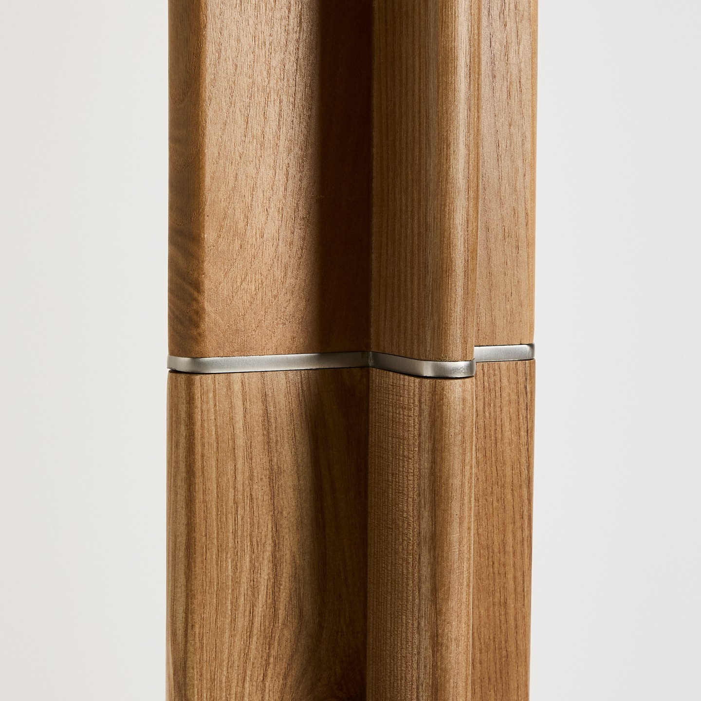 Projekt lampy Niani opiera się na harmonii faktur – drewno, bawełna oraz detale ze szczotkowanej stali tworzą spójną, elegancką całość. To funkcjonalna lampa podłogowa do salonu, która nie tylko oświetla przestrzeń, ale także pełni rolę dekoracyjnego elementu wnętrza.
