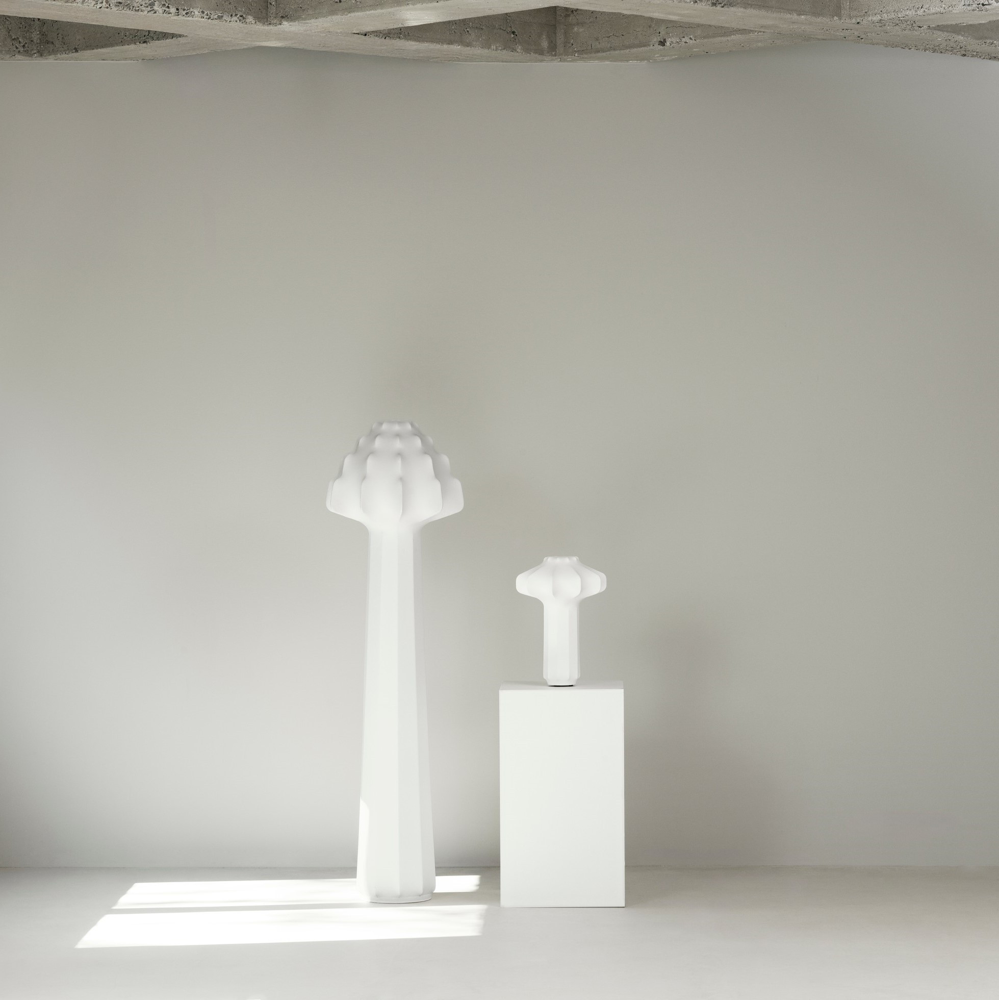 Phantom duńskiej marki Normann Copenhagen to rzeźbiarska lampa podłogowa o monumentalnej, a zarazem lekkiej sylwetce. Inspirowana archetypową formą żyrandola, zachwyca miękką linią i półtransparentną strukturą, która nadaje jej niemal eteryczny charakter. To designerska lampa stojąca premium, łącząca funkcję oświetlenia z wyrazistą formą dekoracyjną.