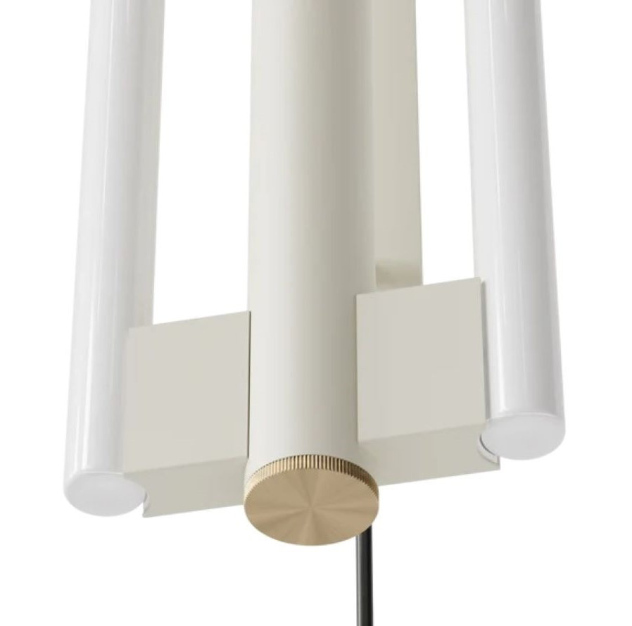 Nowoczesna lampa ścienna zaprojektowana z myślą o idealnym balansie między formą a konstrukcją. Wykonana ze stali malowanej proszkowo, prezentuje architektoniczną prostotę i ponadczasowy minimalizm. Stalowy pręt stanowi bazę całej formy, a mosiężny ściemniacz, umieszczony na górze i dole lampy, umożliwia precyzyjną regulację światła. Opalizująca rura LED emituje miękkie, ciepłe światło (2700K), wprowadzając przytulny klimat nad stołem, biurkiem, w salonie i korytarzu.