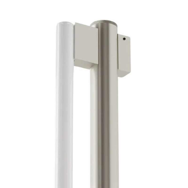 Nowoczesna lampa ścienna zaprojektowana z myślą o idealnym balansie między formą a konstrukcją. Wykonana z polerowanej stali nierdzewnej, prezentuje architektoniczną prostotę i ponadczasowy minimalizm. Stalowy pręt stanowi bazę całej formy, a ściemniacz ze stali nierdzewnej, umieszczony na górze i dole lampy, umożliwia precyzyjną regulację światła. Opalizująca rura LED emituje miękkie, ciepłe światło (2700K), wprowadzając przytulny klimat nad stołem, biurkiem, w salonie i korytarzu.