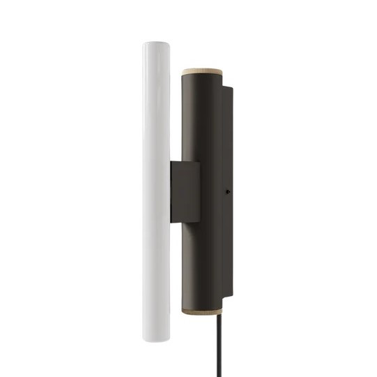 Lampa ścienna Eiffel Single 300 marki Frama to nowoczesna lampa ścienna, która minimalistycznie łączy funkcję i formę. Projekt inspirowany architekturą bazuje na prostym metalowym pręcie w wykończeniu Gunmetal, zwieńczonym mosiężnym ściemniaczem, pozwalającym precyzyjnie regulować intensywność światła. Opalizująca tuba LED rozprasza miękki, ciepły blask (2700K), tworząc przytulną atmosferę zarówno w salonie, sypialni, jak i w przestrzeni biurowej.