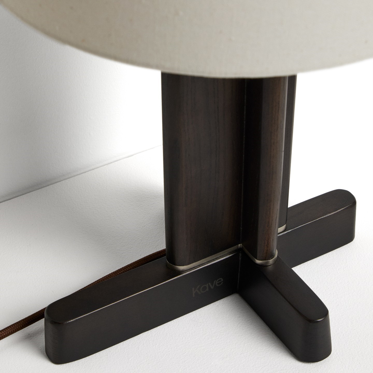 Lampa stołowa z kolekcji Niani hiszpańskiej marki Kave Home. Podstawa wykonana z drewna kauczukowego nadaje całości organiczny, naturalny charakter, sprawiając, że doskonale wpisuje się w aranżacje w stylu nowoczesnym, skandynawskim i japandi. Jasny, bawełniany abażur w kolorze kości słoniowej delikatnie rozprasza światło, tworząc miękkie i nastrojowe oświetlenie idealne do relaksu, salonu lub sypialni.