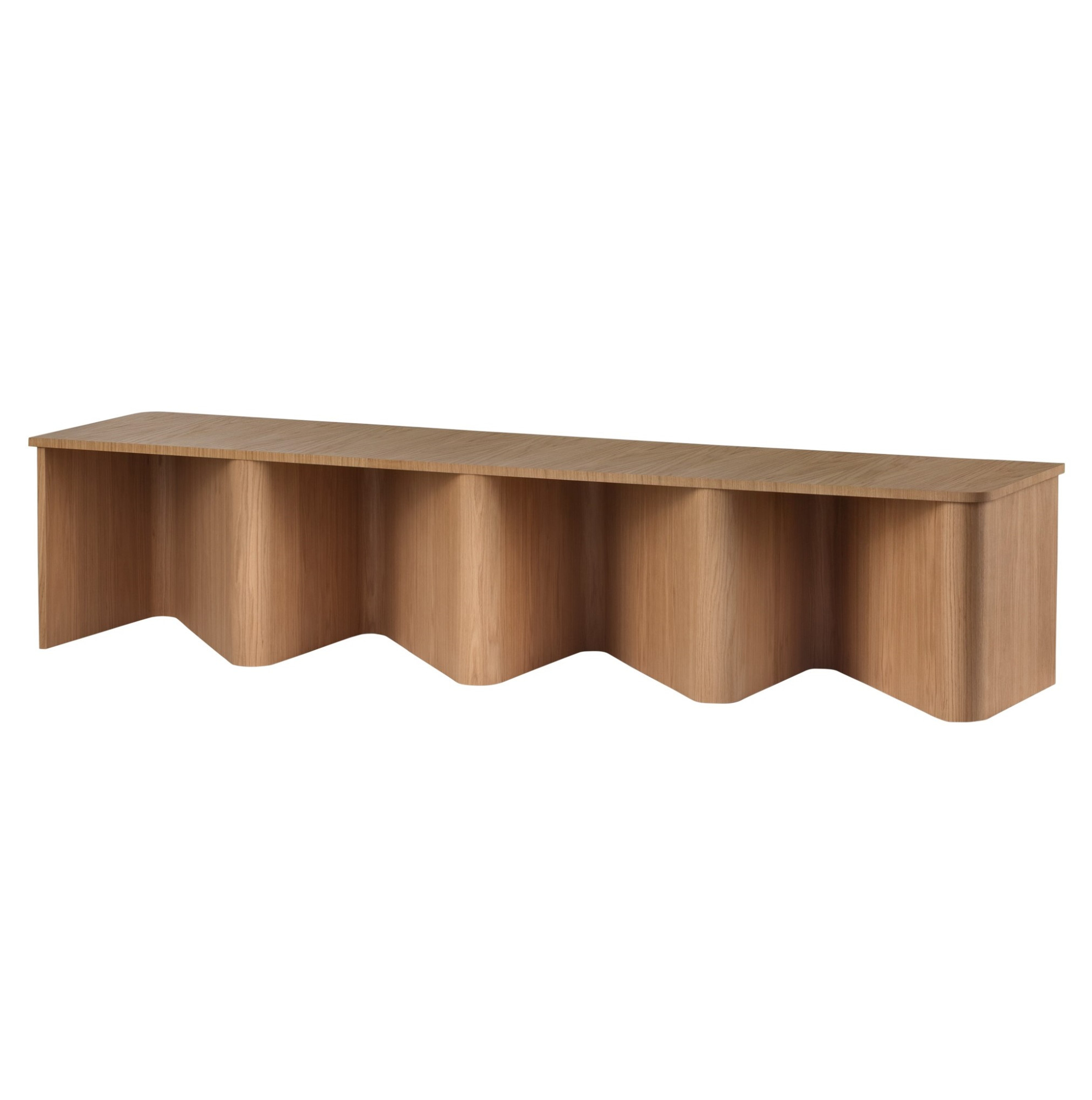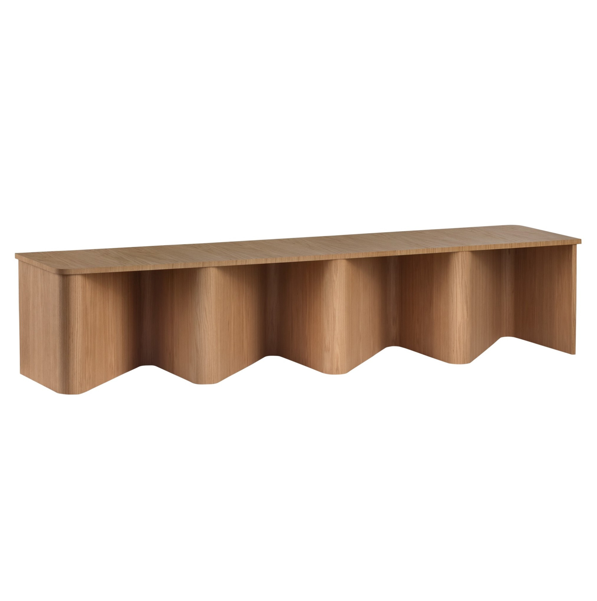 Ławka Nami włoskiej marki Miniforms to połączenie rzeźbiarskiej formy, mistrzowskiego rzemiosła i praktycznego designu. Jej nazwa – „Nami”, czyli fala nawiązuje do falującej linii podstawy wykonanej z giętego drewna, które w rękach włoskich rzemieślników nabiera niemal elastycznego charakteru. Ta organiczną forma emanuje lekkością i rytmem, wprowadzając do wnętrza poczucie harmonii i elegancji.