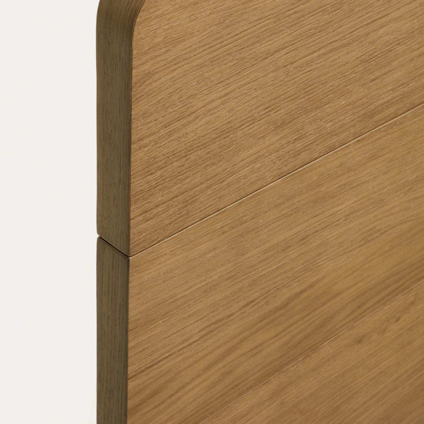 Łóżko dębowe z kolekcji Arelida hiszpańskiej marki Kave Home. Wykonane z forniru i litego drewna dębowego w jasnobrązowym wykończeniu, pięknie eksponuje naturalne usłojenie drewna. Gładkie linie i zaokrąglone krawędzie nadają bryle lekkości, a rama podstawy, lekko wystająca poza obręb łóżka, podkreśla wyrazistość drewna. Ozdobne, frezowane linie na zagłówku dodają subtelnego charakteru, dzięki czemu łóżko harmonijnie wpisuje się w aranżacje rustykalne, heritage oraz nowoczesne wnętrza inspirowane naturą.