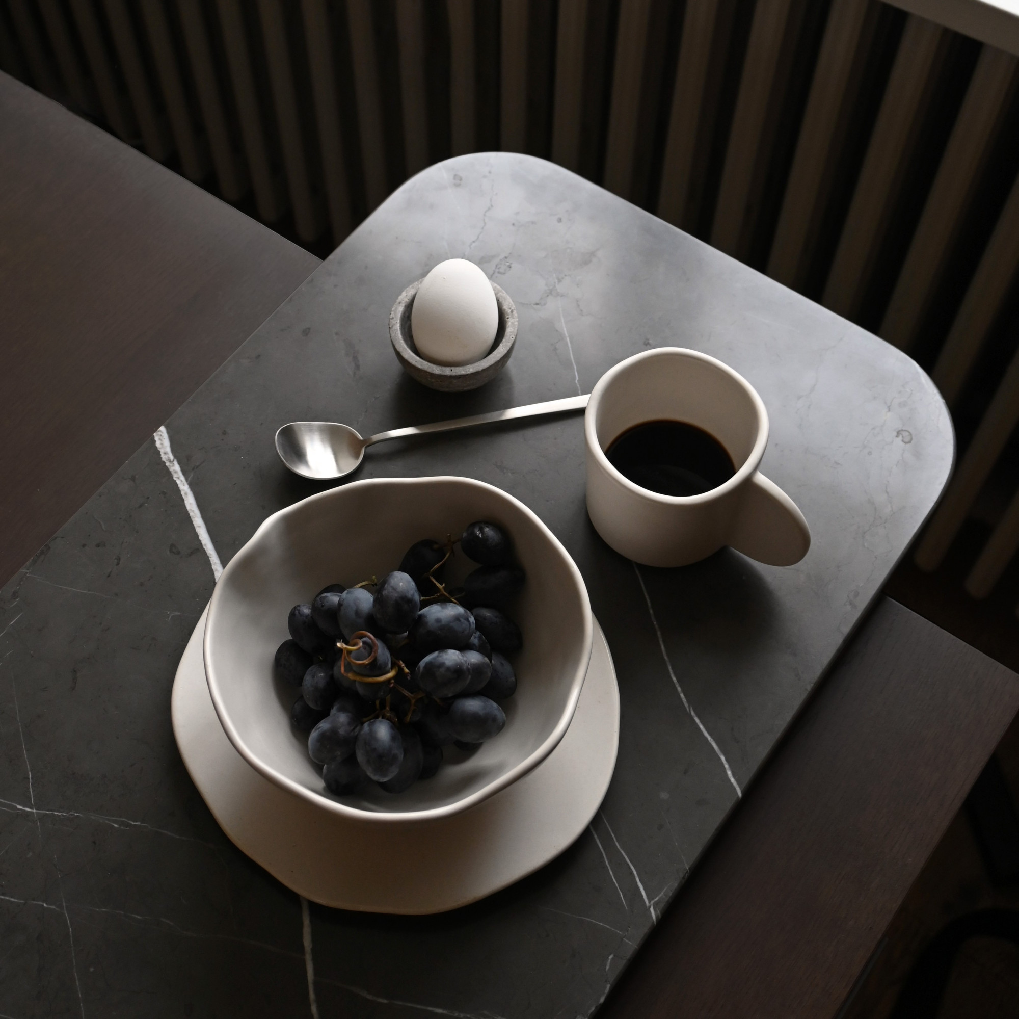 Produkt wykonany jest z trwałej ceramiki, wypalanej w wysokiej temperaturze i pokrytej ręcznie nakładaną glazurą. Dzięki temu misa zyskuje naturalny, jasny odcień Birch – ciepły beż inspirowany kolorem drewna brzozowego, który doskonale komponuje się z nowoczesnymi i minimalistycznymi aranżacjami stołu.