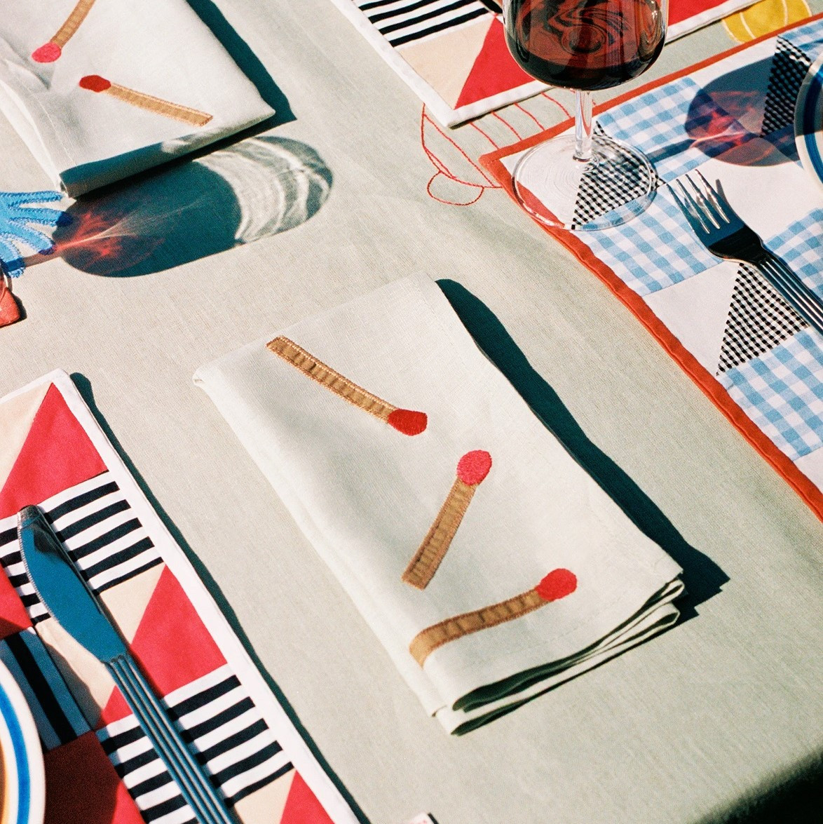 Sobremesa to eleganckie serwetki zaprojektowane przez Lailę Gohar w ramach współpracy artystycznej z marką HAY, celebrujące radość spotkań przy stole. Wykonane z wysokiej jakości mieszanki lnu i bawełny, certyfikowane zgodnie z OEKO-TEX® STANDARD 100, każda serwetka posiada unikatowy haft lub aplikację, nadając dekoracyjny charakter nakryciu. Dostępne w różnych kolorach, idealnie komponują się zarówno solo, jak i z serwetnikami, obrusami czy podkładkami z kolekcji Sobremesa.
