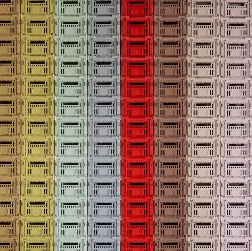 Colour Crate to seria wielokolorowych skrzynek do przechowywania, wyróżniających się charakterystycznym, perforowanym wzorem. Wykonane w 100% z przetworzonych tworzyw sztucznych, można je układać w stosy i dowolnie łączyć kolory, tworząc funkcjonalne i efektowne aranżacje w domu.