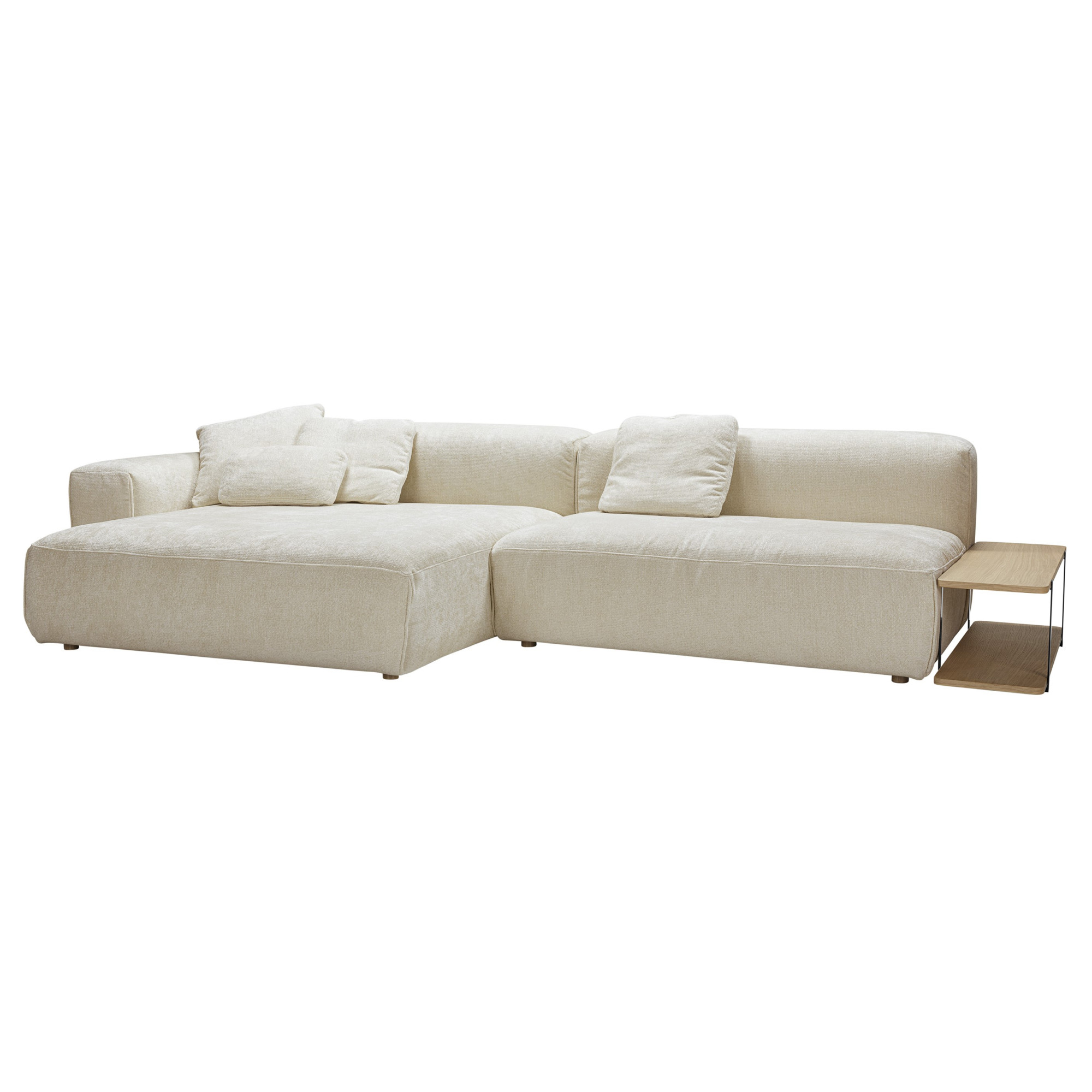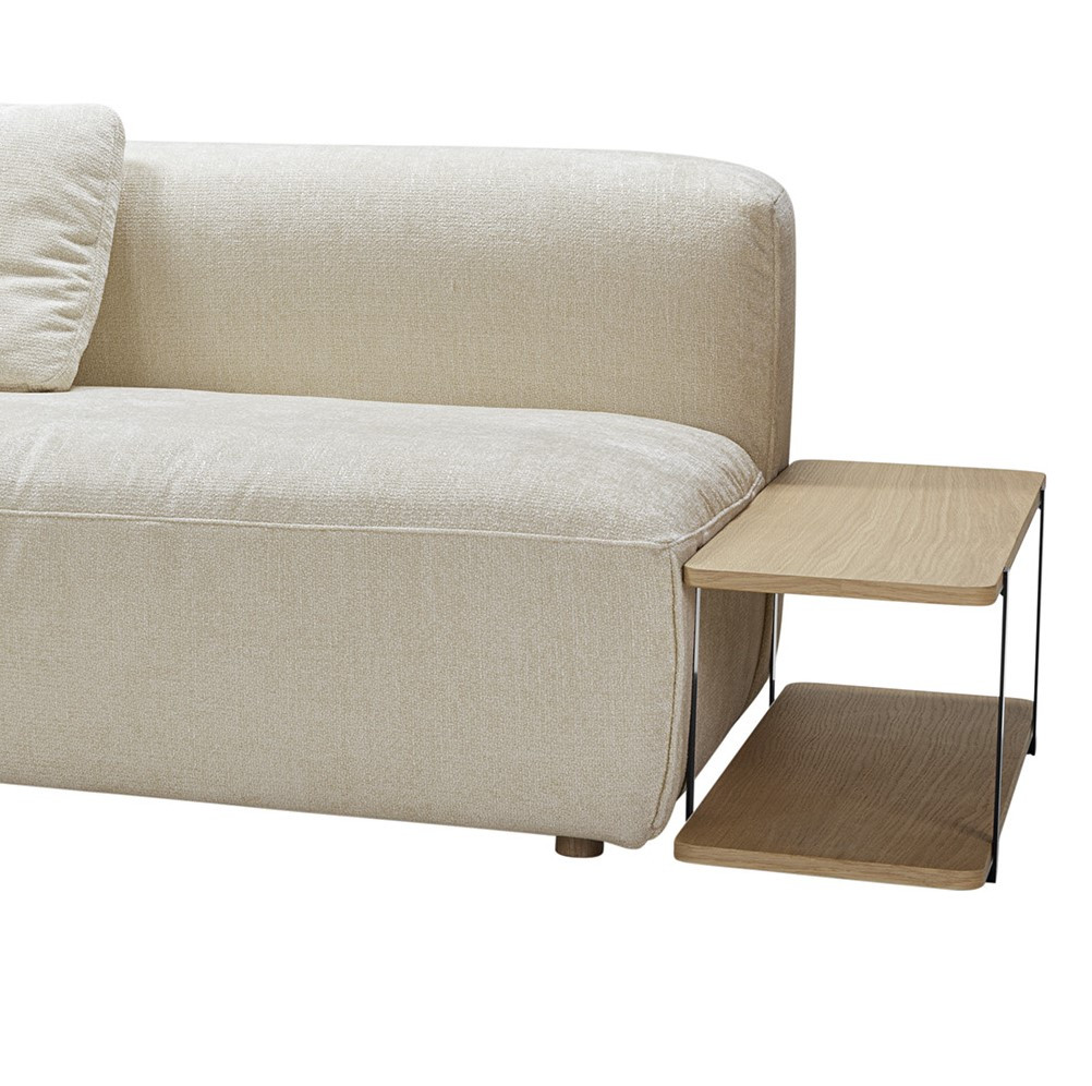 Edda to sofa modułowa zaprojektowana z myślą o nowoczesnych wnętrzach, w których liczą się elastyczność, wygoda i swoboda aranżacji. W układzie o szerokości 352 cm oferuje wyjątkowo przestronną strefę wypoczynku, zapewniając komfort zarówno w codziennym użytkowaniu, jak i podczas spotkań w większym gronie. Całość uzupełnia praktyczny stolik, który zwiększa funkcjonalność zestawu i tworzy wygodne miejsce na codzienne drobiazgi. Sofa została wykończona wysokiej jakości tkaniną Bloom Cream w eleganckim, ciepłym odcieniu beżu, który wprowadza do wnętrza miękkość i naturalną harmonię. Materiał jest miękki, strukturalny i przyjemny w dotyku, co podkreśla nowoczesny, a jednocześnie przytulny charakter bryły.