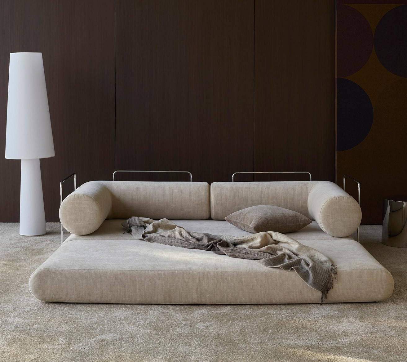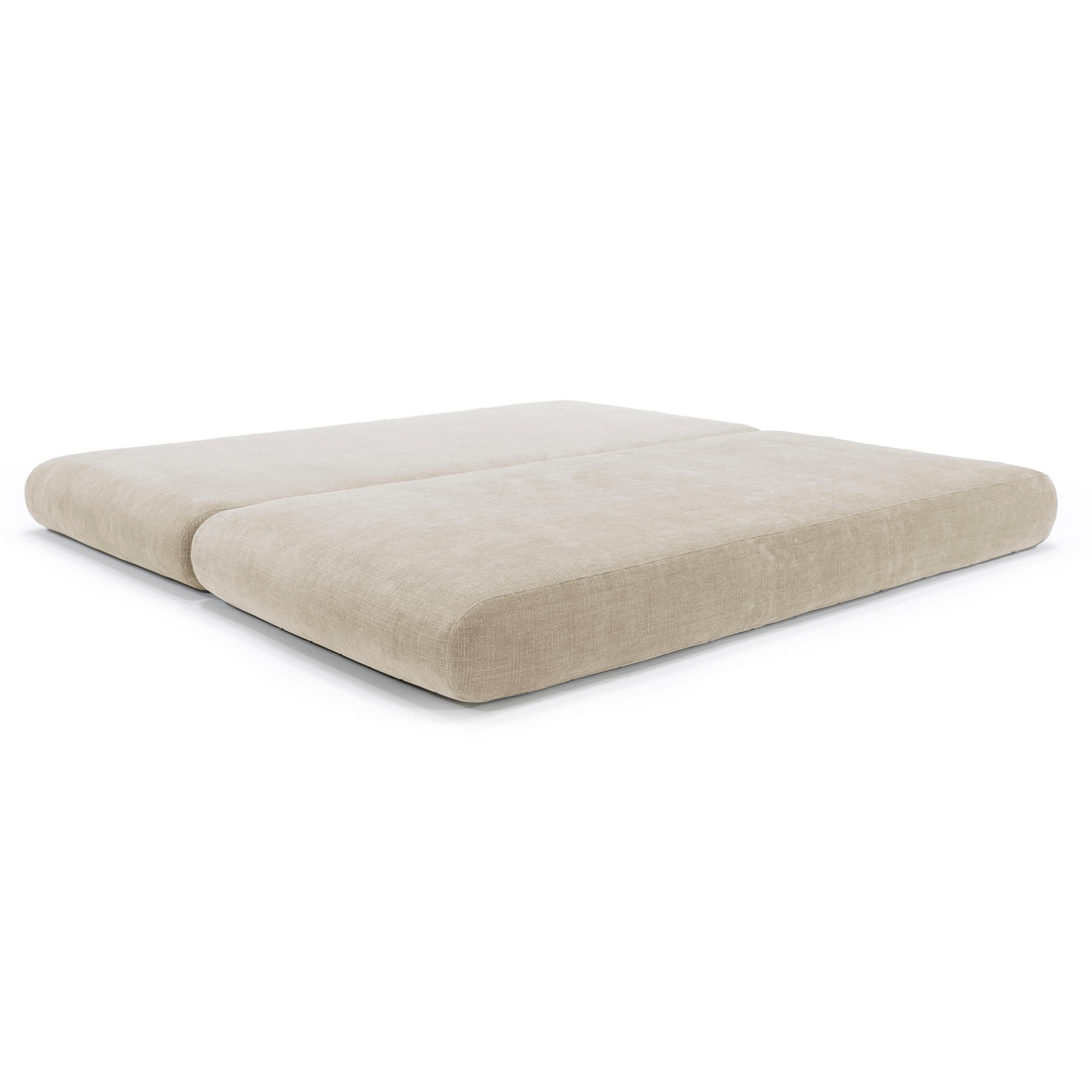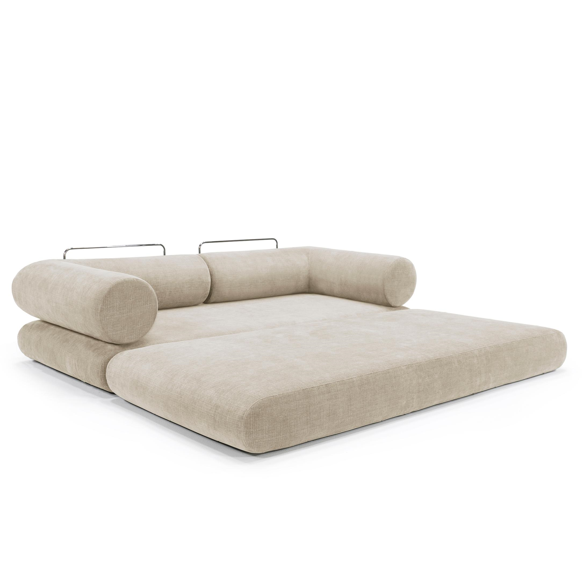 Sofa rozkładana Circlus L-Shape marki Innovation Living to wyrafinowany design inspirowany stylem lat 70., w którym centralnym motywem jest geometria koła i miękka, rzeźbiarska forma. Ta nowoczesna sofa łączy funkcję sofy, strefy relaksu i wygodnego łóżka, oferując pełną elastyczność w codziennym użytkowaniu. Może pełnić rolę podwójnego łóżka lub dwóch osobnych miejsc do spania, co czyni ją wyjątkowo praktycznym rozwiązaniem do nowoczesnych wnętrz.