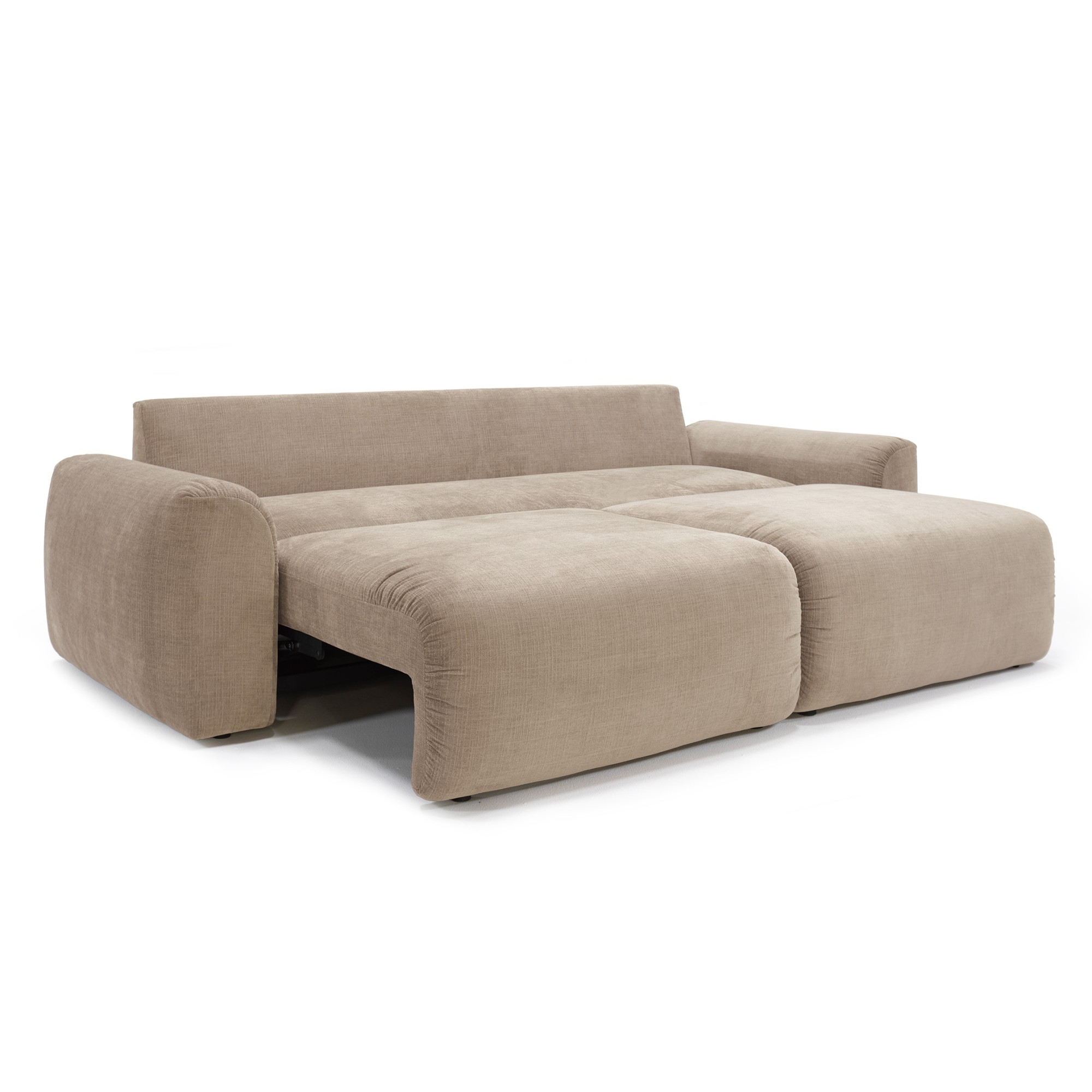 Sofa oparta jest na konstrukcji Double Spring Comfort, łączącej sprężyny no-zag i kieszeniowe z wysokoelastyczną pianką, co zapewnia miękkie, ale stabilne podparcie zarówno w pozycji siedzącej, jak i leżącej. W kilka sekund zmienia się w wygodne łóżko o powierzchni 145 × 200 cm, idealne dla gości lub codziennego spania.