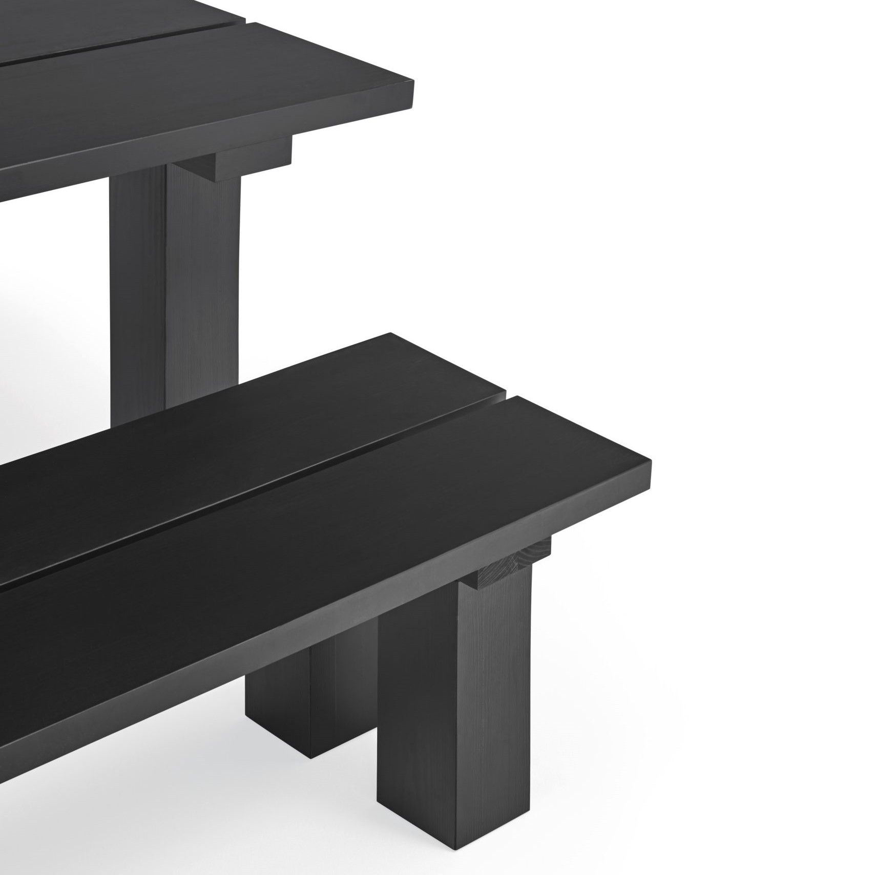 Konstrukcja oparta na czterech solidnych nogach z litej sosny o wysokiej gęstości gwarantuje stabilność, trwałość i odporność na codzienne użytkowanie. W wersji czarnej stół zyskuje bardziej wyrazisty, elegancki charakter – głębokie, matowe wybarwienie podkreśla nowoczesną formę i nadaje wnętrzu prestiżowego tonu, jednocześnie zachowując widoczną strukturę drewna.