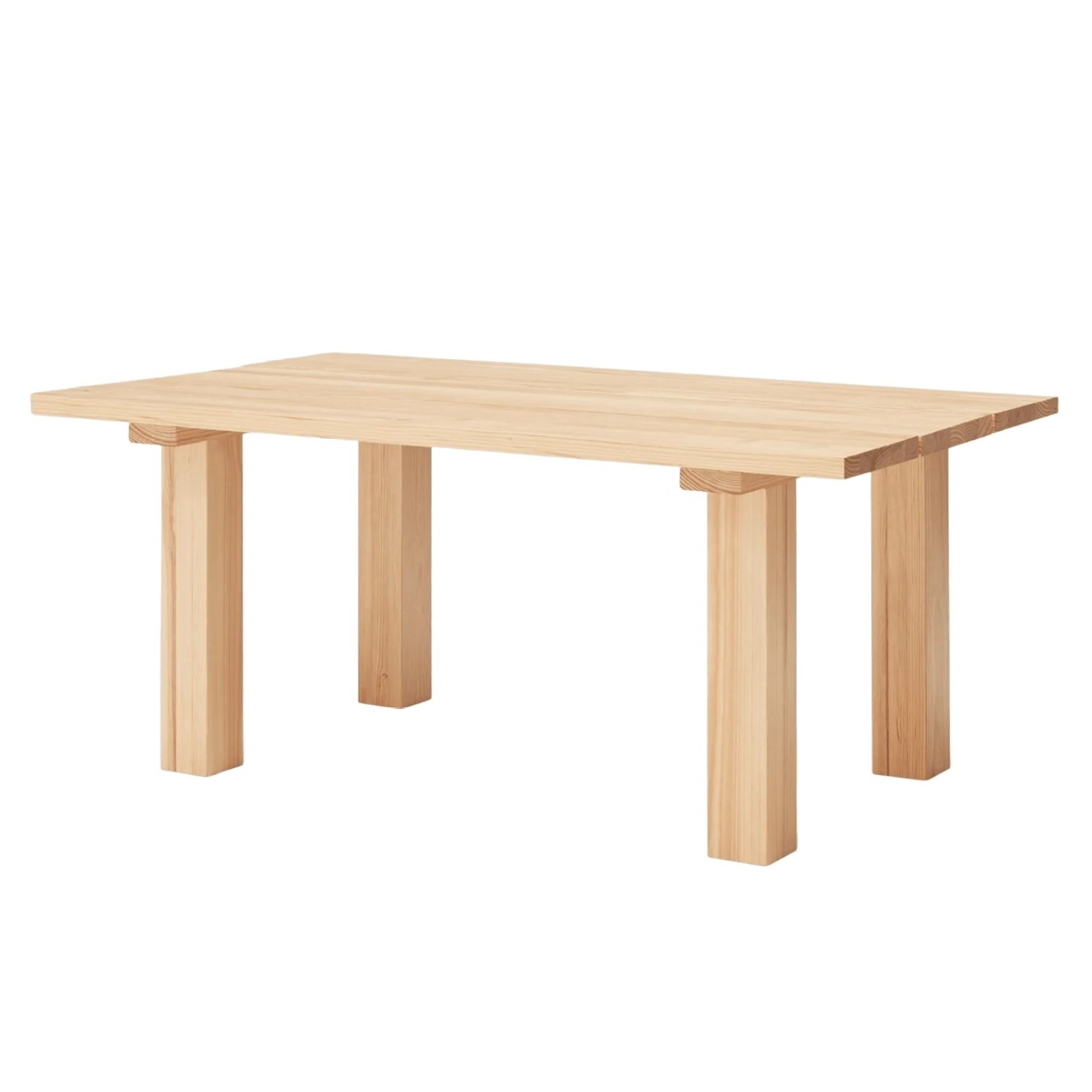 Konstrukcja oparta na czterech solidnych nogach z litej sosny o wysokiej gęstości gwarantuje stabilność, trwałość i odporność na codzienne użytkowanie. Model dostępny jest w wybarwieniu naturalna sosna oraz czarna sosna – kolor drewna może się subtelnie różnić, co dodatkowo podkreśla jego unikatowość.