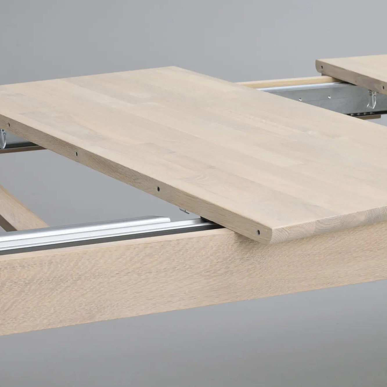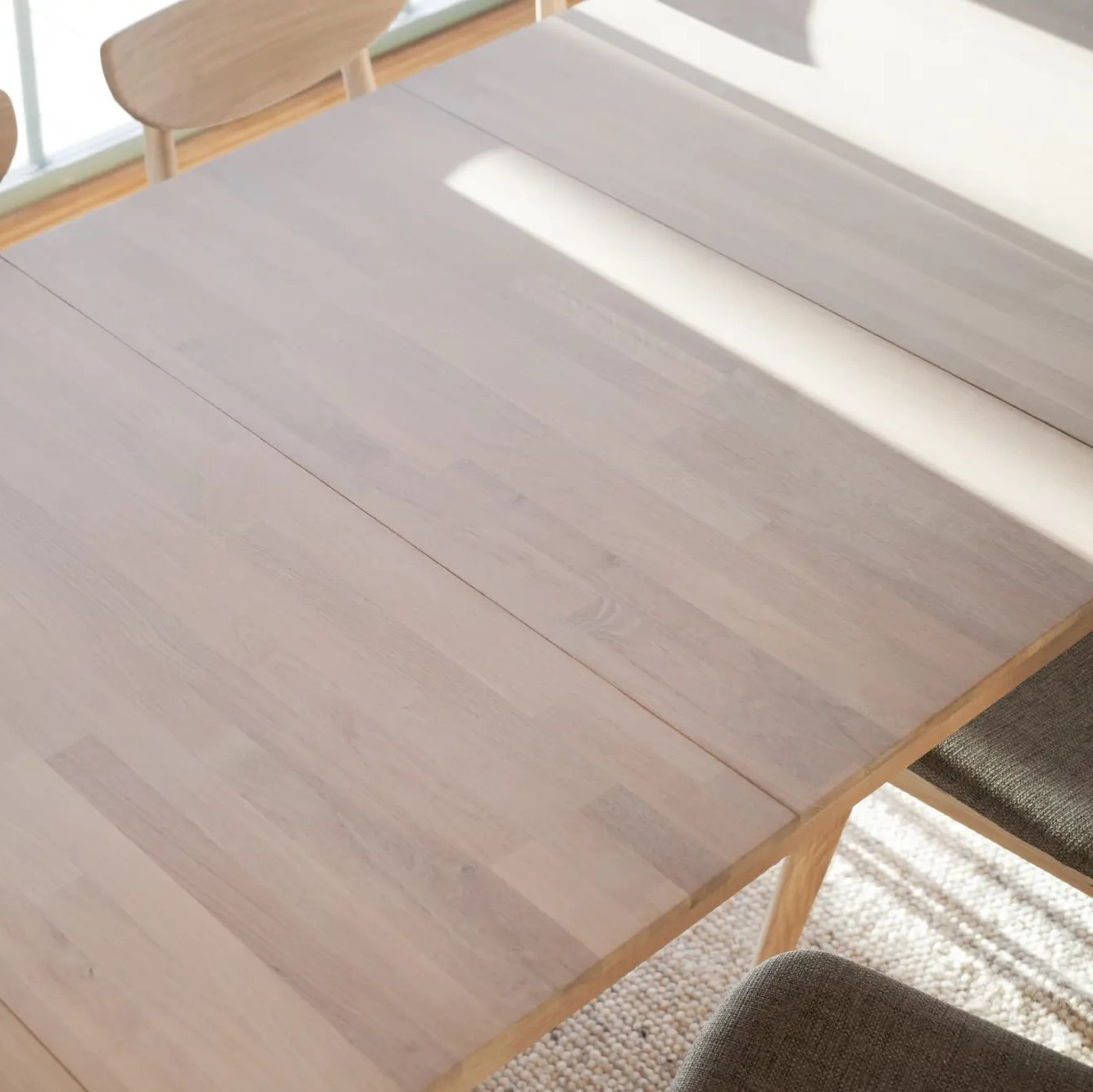 Stół rozkładany Gardner szwedzkiej marki Rowico to dębowy stół do jadalni, który łączy skandynawski design, funkcjonalność i naturalne piękno litego dębu. Wykonany z europejskiego drewna najwyższej jakości, zachwyca solidnością i elegancją. Wersja whitewash (dąb bielony) wprowadza do wnętrza lekkość i świeżość, natomiast brown-oiled (dąb olejowany na brązowo) podkreśla ciepło i głębię naturalnego surowca.