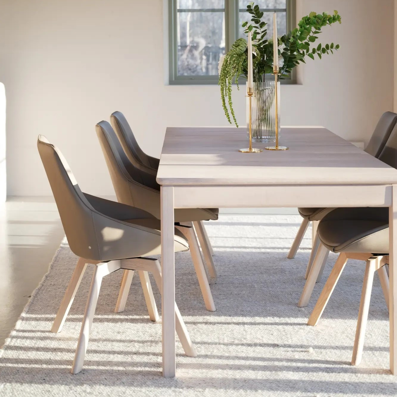 Powierzchnia stołu zabezpieczona olejem Rubio Monocoat jest odporna na plamy i zarysowania, nie wymaga dodatkowej impregnacji. Certyfikat FSC® gwarantuje, że drewno pochodzi z odpowiedzialnych źródeł. Gardner to stół, który łączy elegancję, trwałość i szacunek do natury, będąc idealnym wyborem jako nowoczesny stół do jadalni.
