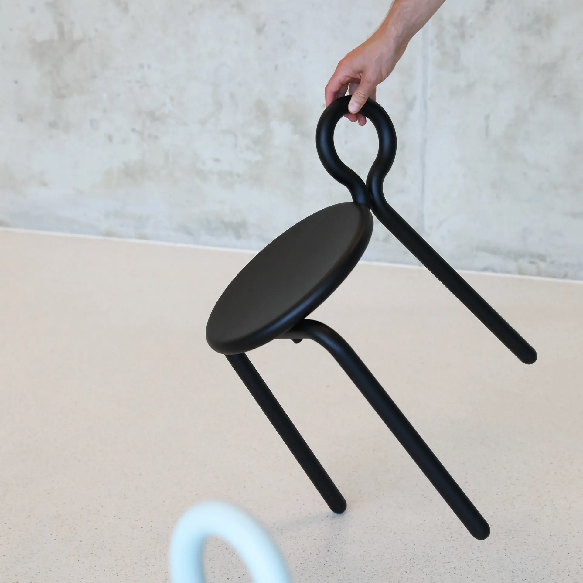 Stołek Lasso Black to designerski, wielofunkcyjny mebel wykonany z metalu, który łączy minimalistyczną formę z codzienną funkcjonalnością. Lekka konstrukcja sprawia, że stołek jest łatwy do przenoszenia i elastyczny w użytkowaniu – idealny jako dodatkowe siedzisko, stolik pomocniczy lub praktyczne miejsce na książki, rośliny czy dekoracje.