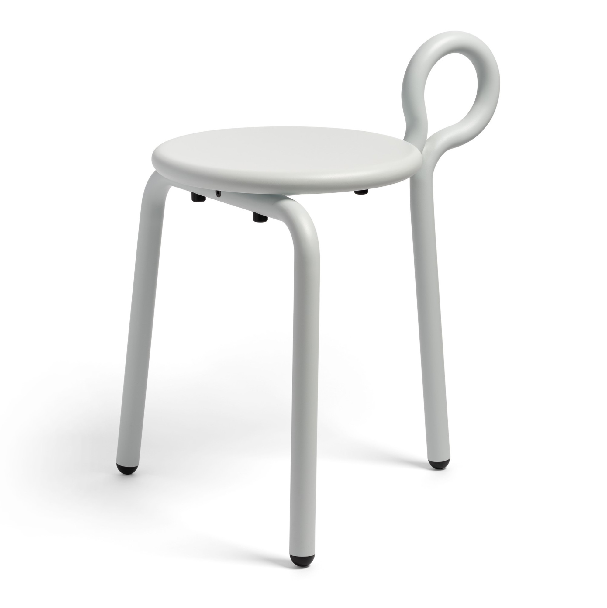 Zaokrąglone linie oraz subtelnie wygięte zakończenia nóg nadają całości spójny, nowoczesny charakter, który doskonale odnajdzie się w aranżacjach loftowych, skandynawskich i minimalistycznych. Jasnoniebieskie, metalowe wykończenie podkreśla uniwersalność stołka i pozwala łatwo dopasować go do różnych wnętrz – od salonu, przez sypialnię, aż po przedpokój.