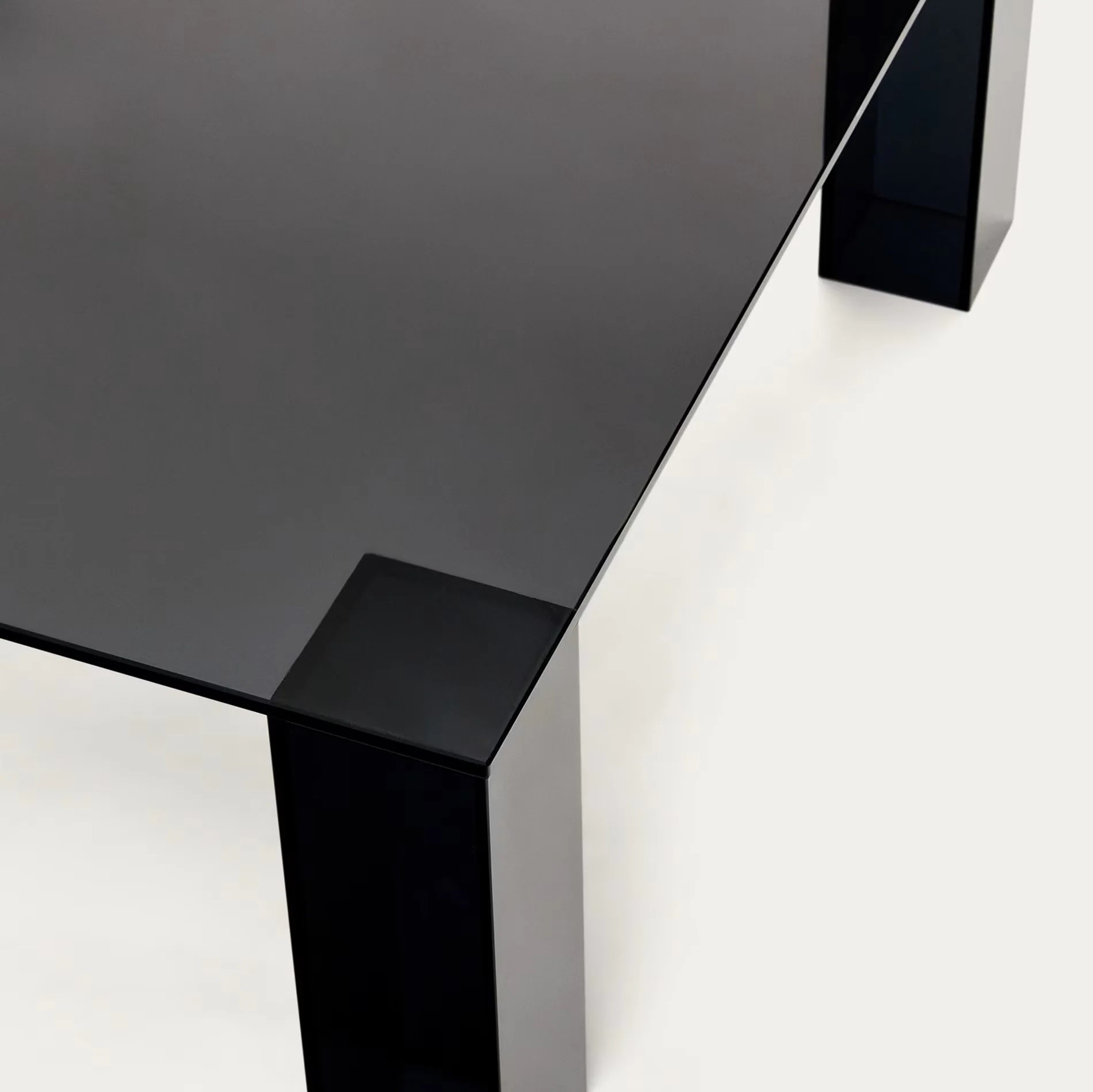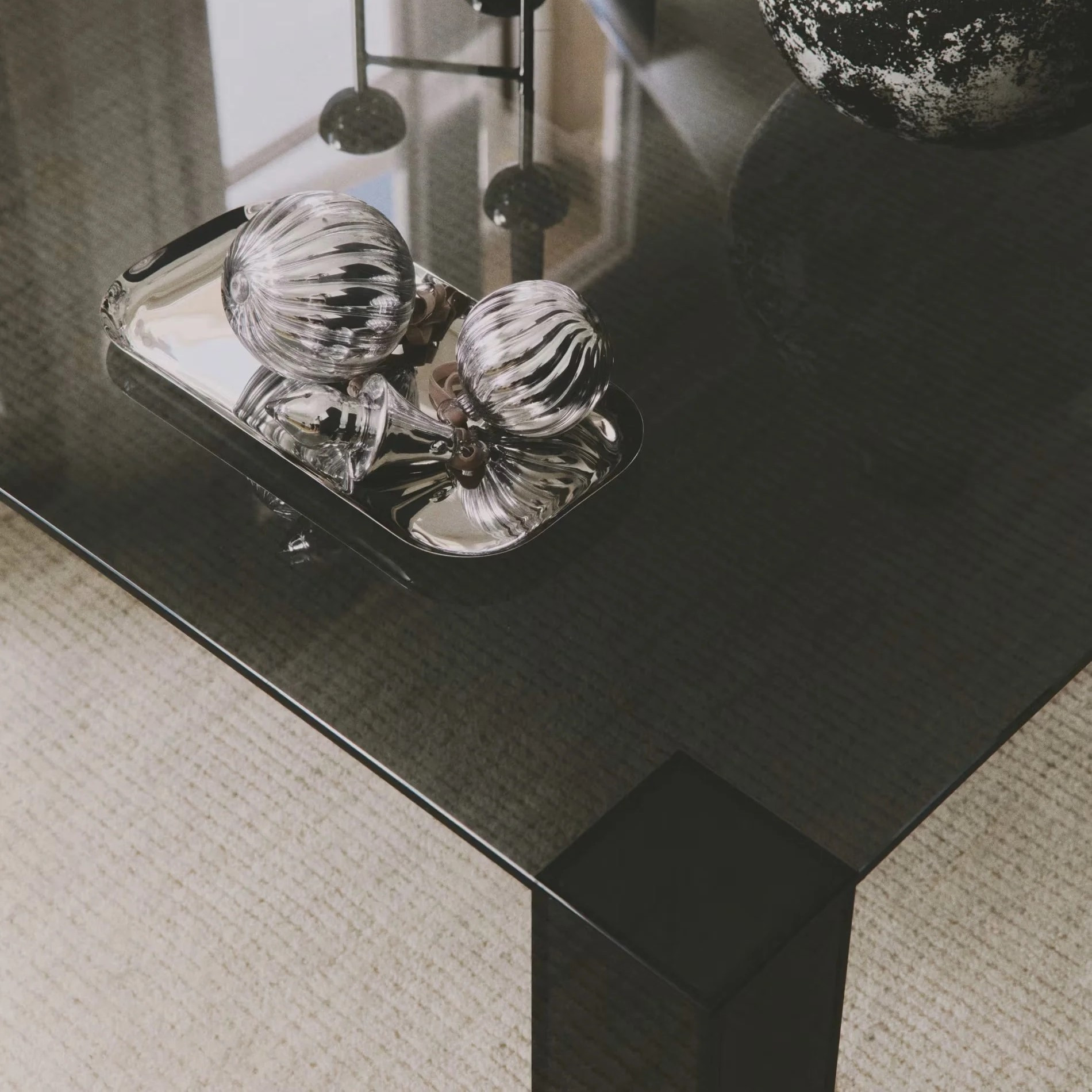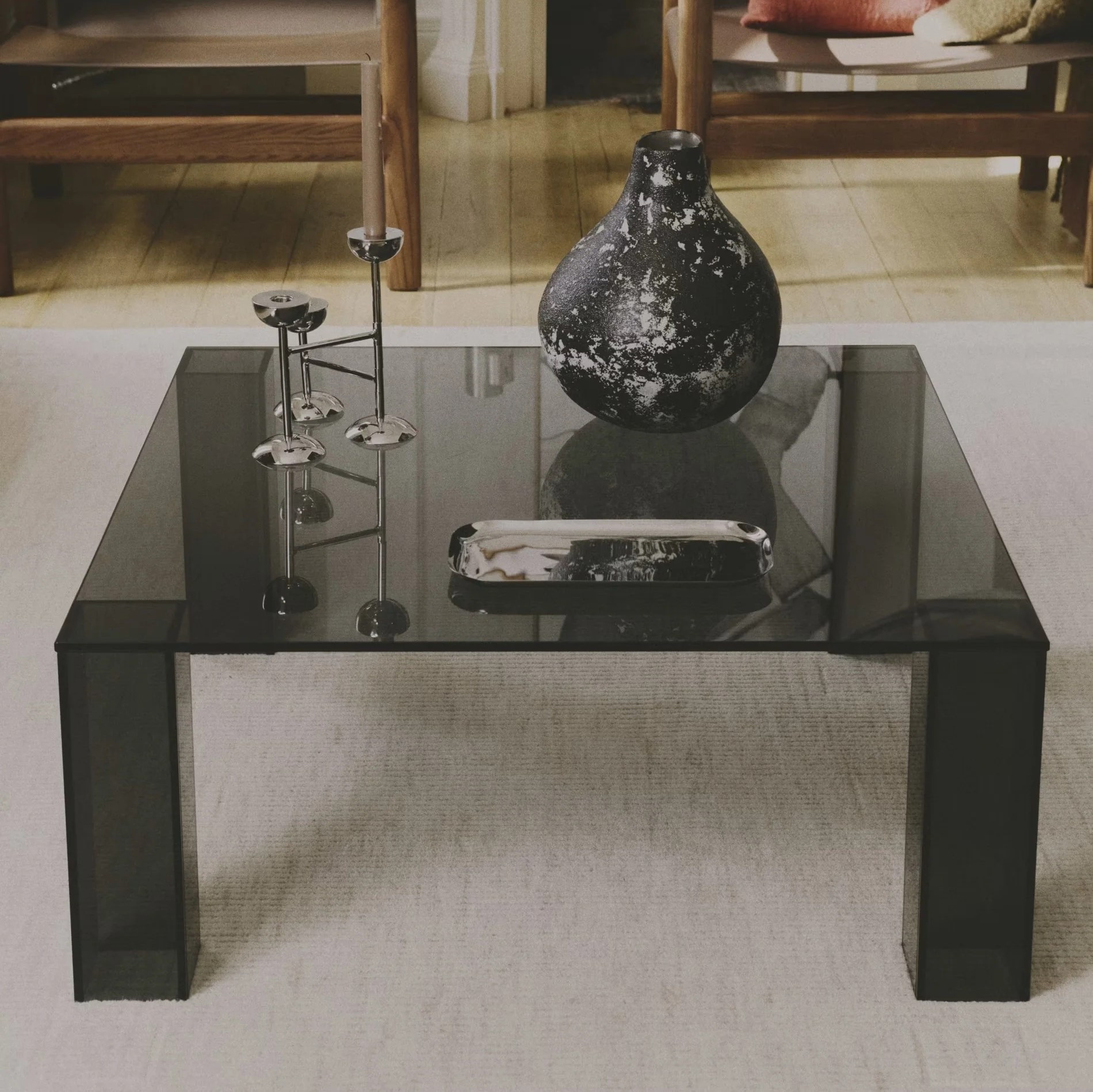 Stolik kawowy Adularia to połączenie minimalizmu, elegancji i nowoczesnego designu. Wykonany w całości z wytrzymałego szkła hartowanego, zachwyca czystymi liniami i idealnymi kątami prostymi, które nadają wnętrzu lekkości i harmonii. Jego elegancka, ciemnoszara struktura subtelnie odbija światło, optycznie powiększając przestrzeń.