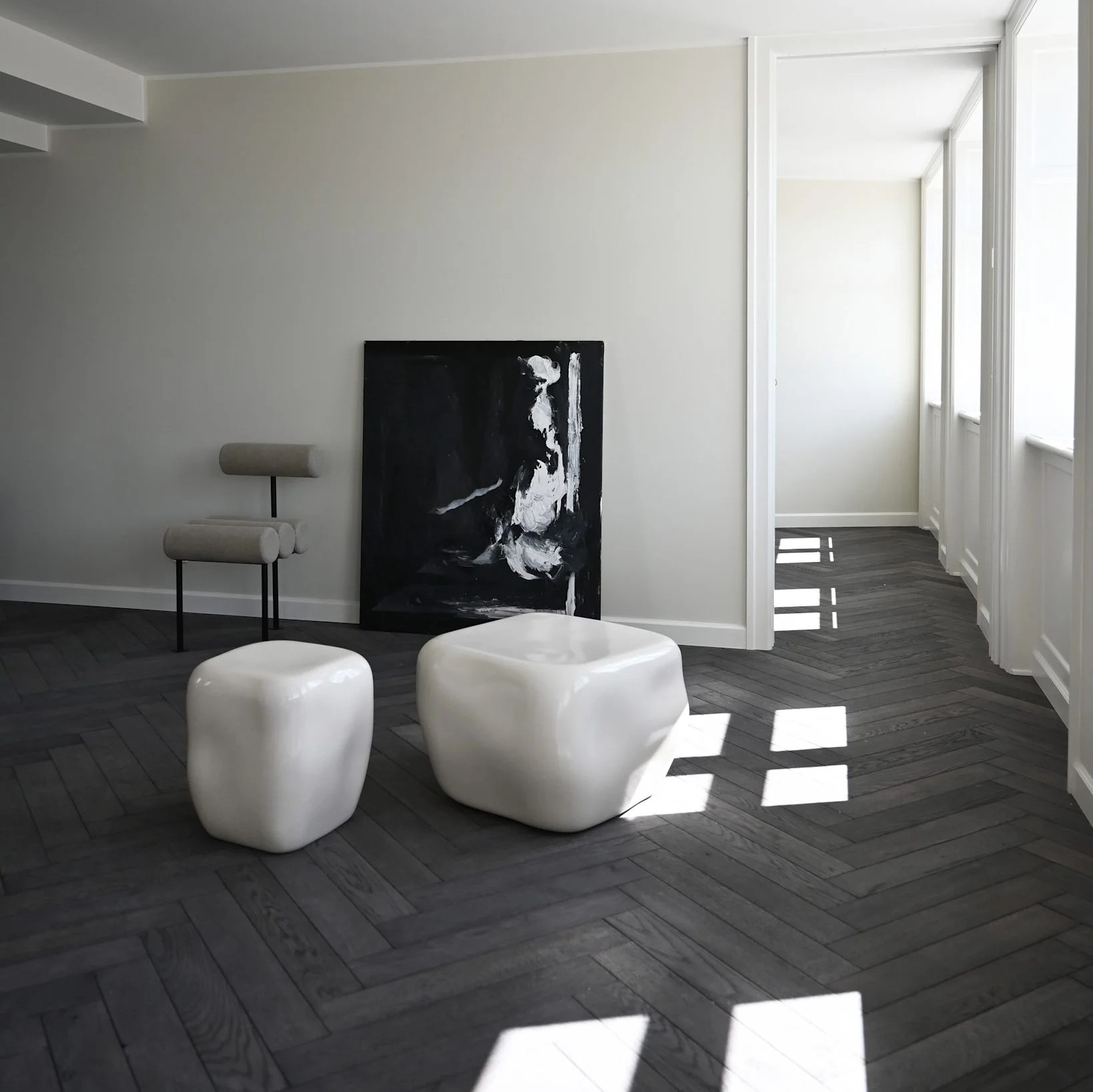 Ishi duńskiej marki 101 Copenhagen to rzeźbiarski stolik inspirowany japońskim słowem ishi – „kamień”. Jego organiczna, lekko zdeformowana bryła wprowadza do wnętrza spokój i naturalny rytm, łącząc minimalistyczny design z artystyczną formą. Wykonany z wysokogatunkowej ceramiki i wykończony połyskującą glazurą, każdy egzemplarz jest ręcznie malowany, dzięki czemu unikatowy.