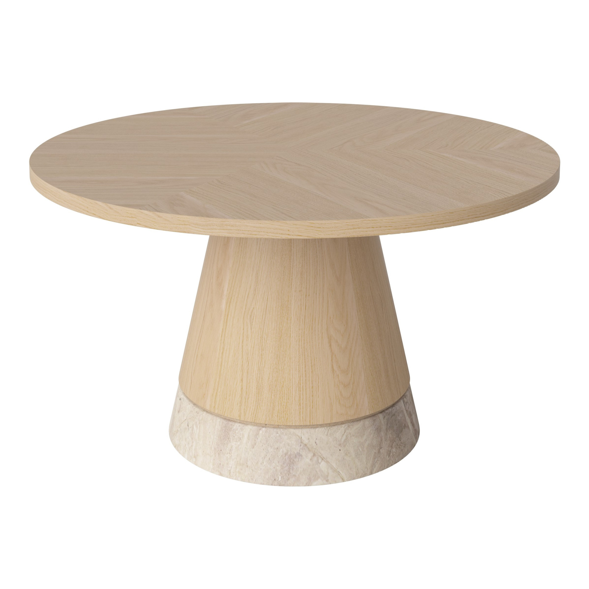 Stolik kawowy Piro Bolia to kwintesencja skandynawskiego designu – naturalna elegancja, minimalizm i perfekcyjne rzemiosło. Zaprojektowany przez Michaela H. Nielsena, zachwyca połączeniem bielonego dębu i beżowego marmuru, tworząc wyjątkowy, nowoczesny stolik kawowy do każdego wnętrza. Solidna, stożkowa kolumna i kamienna podstawa zapewniają stabilność, a delikatna forma wnosi harmonię do nowoczesnego salonu.