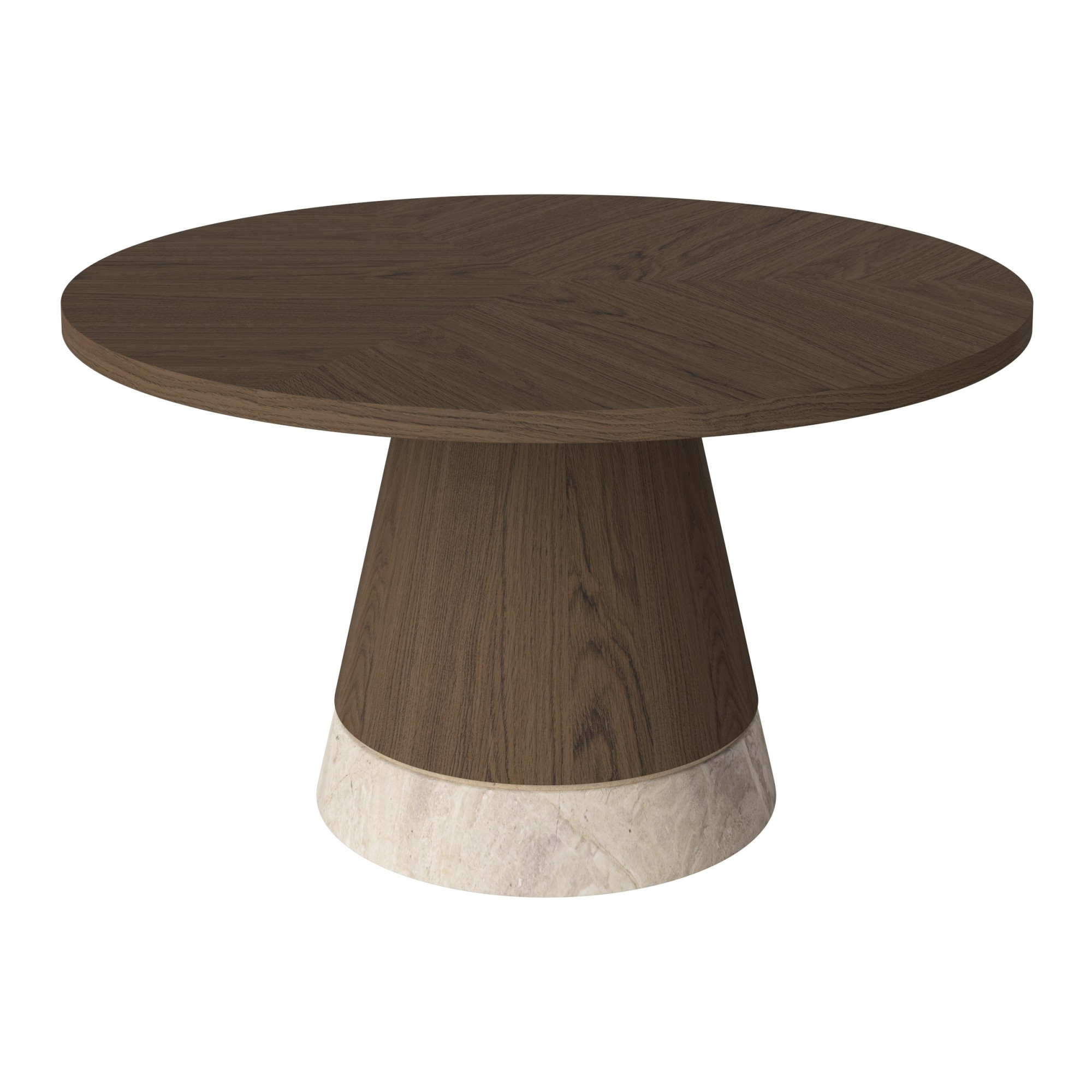 Stolik kawowy Piro Bolia to kwintesencja skandynawskiego designu – naturalna elegancja, minimalizm i perfekcyjne rzemiosło. Zaprojektowany przez Michaela H. Nielsena, zachwyca połączeniem ciemno olejowanego dębu i naturalnego, beżowego marmuru, tworząc wyjątkowy, nowoczesny stolik kawowy do każdego wnętrza. Solidna, stożkowa kolumna i kamienna podstawa zapewniają stabilność, a delikatna forma wnosi harmonię do nowoczesnego salonu.