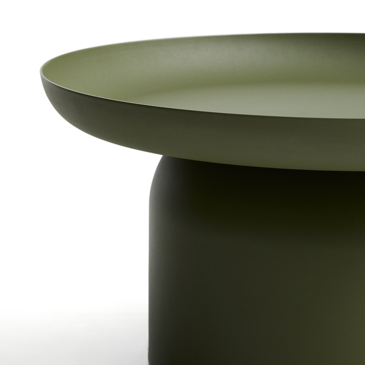 Okrągły blat oraz harmonijne proporcje sprawiają, że stolik świetnie wpisuje się w aranżacje nowoczesne i industrialne, wprowadzając do wnętrza świeży, zielony akcent. U podstawy nóg znajdują się plastikowe ochraniacze, które chronią podłogę przed zarysowaniami i poprawiają stabilność mebla.