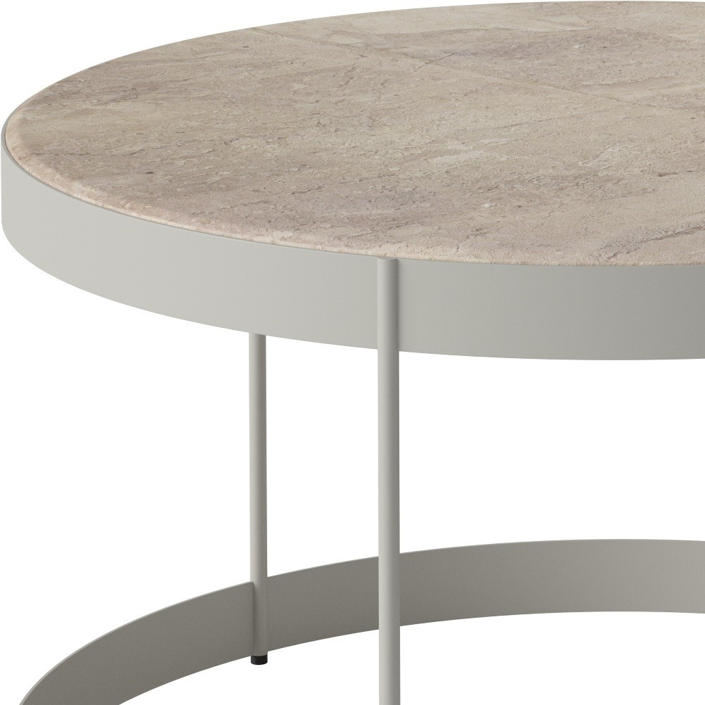 Outdoorowa wersja klasycznego stolika Drum duńskiej marki Bolia łączy minimalistyczny skandynawski design z najwyższej jakości materiałami odpornymi na warunki atmosferyczne. Blat wykonany z beżowego marmuru pięknie komponuje się z naturalnym otoczeniem.