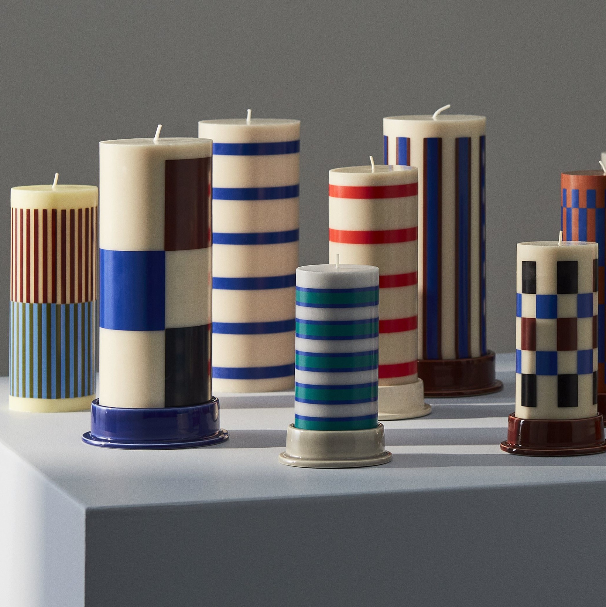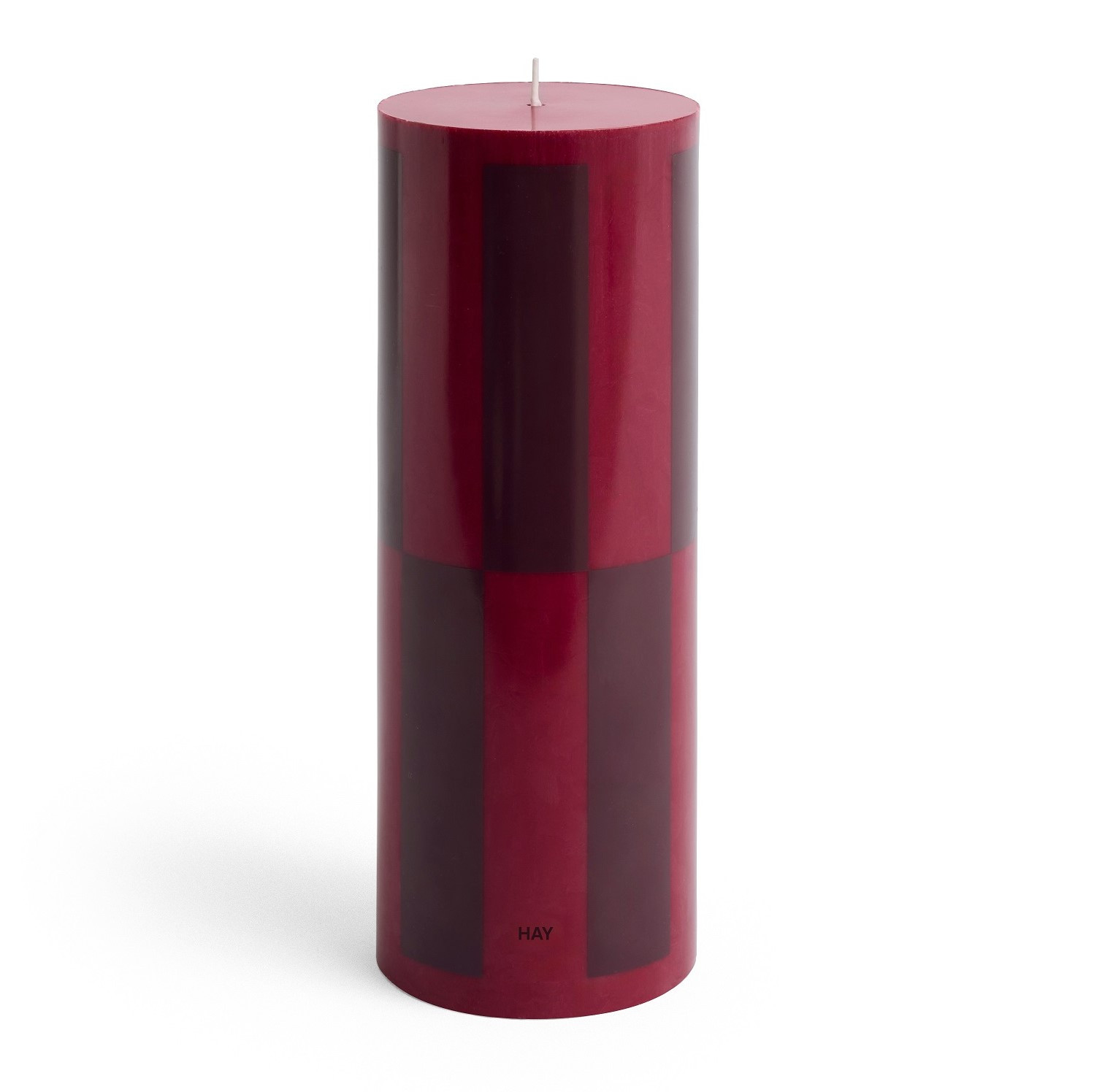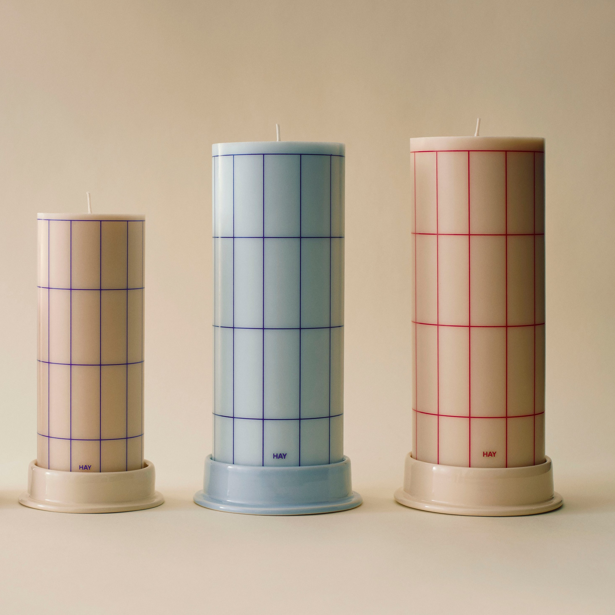 Świeca kolumnowa o wyrazistej, graficznej formie. Jej solidna bryła oraz charakterystyczny wzór kraty wprowadzają do przestrzeni świeży, współczesny akcent. Kolorowe pasy w układzie pionowym i poziomym tworzą dynamiczny efekt wizualny, będący znakiem rozpoznawczym estetyki HAY. Świeca doskonale prezentuje się zarówno jako samodzielna dekoracja, jak i w kompozycjach z innymi świecami Column w różnych kolorach i rozmiarach.