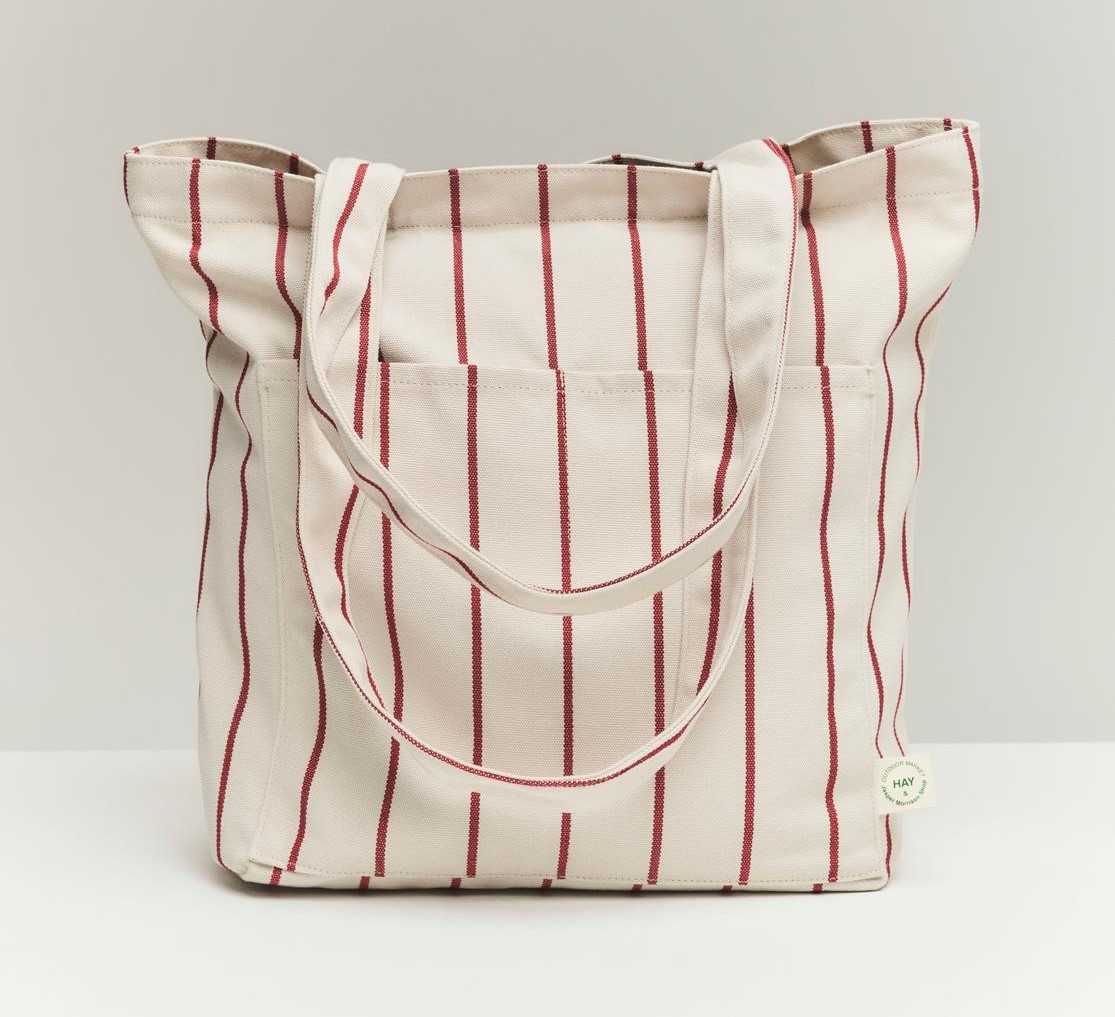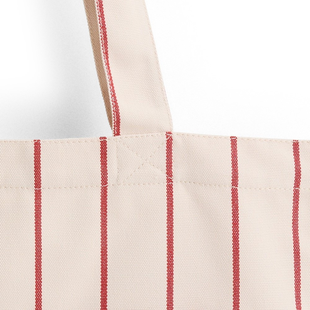 Ekologiczna torba na zakupy z kolekcji Outdoor Market duńskiej marki HAY to minimalistyczny i praktyczny dodatek zaprojektowany przez Jaspera Morrisona. Torba na zakupy z uchwytami łączy prosty, ponadczasowy design z funkcjonalnością, dzięki czemu sprawdza się zarówno na co dzień, jak i podczas wyjazdów, zakupów czy letnich aktywności na świeżym powietrzu. Charakterystyczne beżowo-czerwone pasy nadają jej rozpoznawalny, lekko retro charakter inspirowany klasycznymi wzorami tekstylnymi.