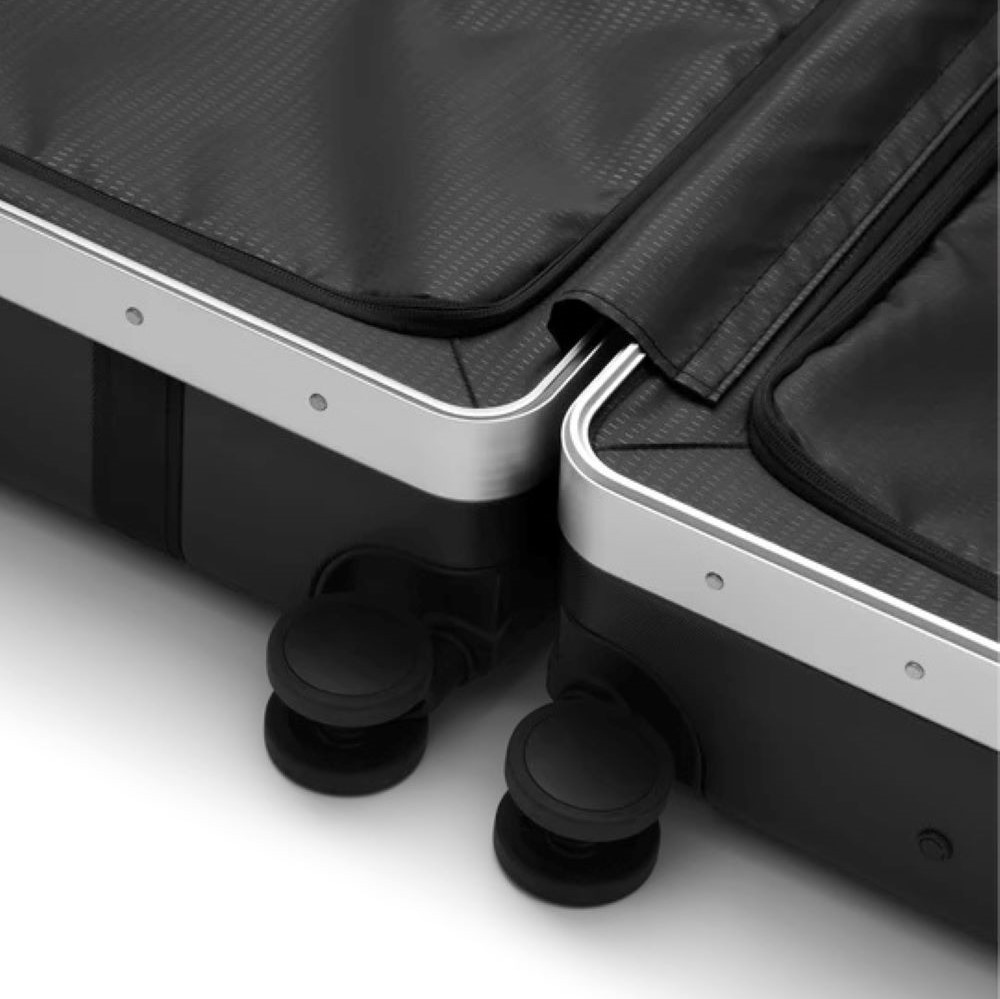 Wnętrze zaprojektowano z myślą o komforcie – dwustronne przegrody pozwalają łatwo zorganizować przestrzeń, a ultraciche japońskie kółka Hinomoto 360° zapewniają płynne prowadzenie nawet na zatłoczonych lotniskach.