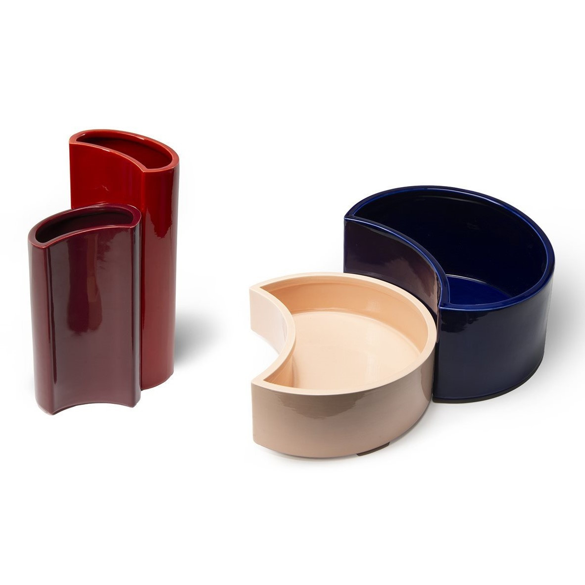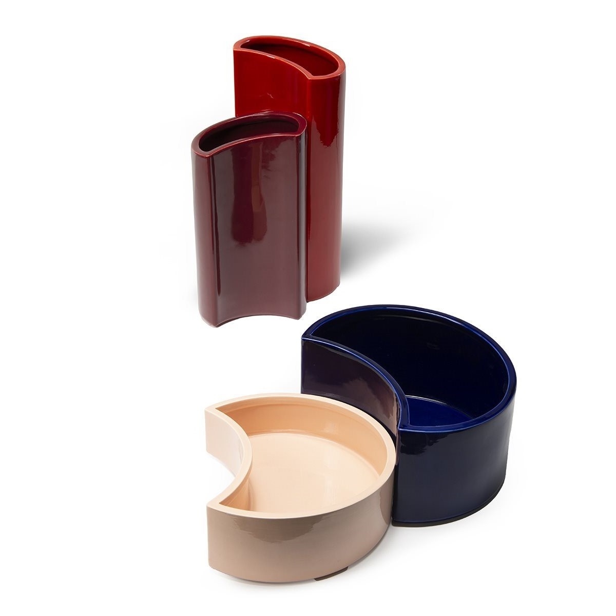 Vazon V Bol włoskiej marki Zanotta to elegancka interpretacja współczesnego designu, łącząca nowoczesną formę z klasyczną funkcją dekoracyjną. Wykonany z polerowanej, szkliwionej gliny, zachwyca głębią koloru i subtelnym połyskiem. Dostępny w odcieniach różowym, ciemnoniebieskim, czerwonym oraz bordowym (burgund), w dwóch wariantach modeli 9562 i 9563 oraz dwóch rozmiarach Low i High, pozwala tworzyć stylowe kompozycje pojedynczo lub w grupach.