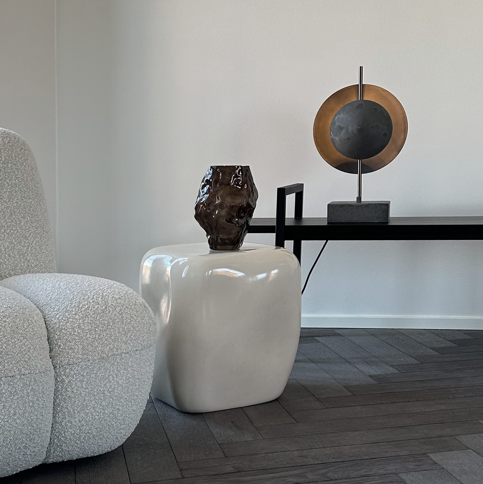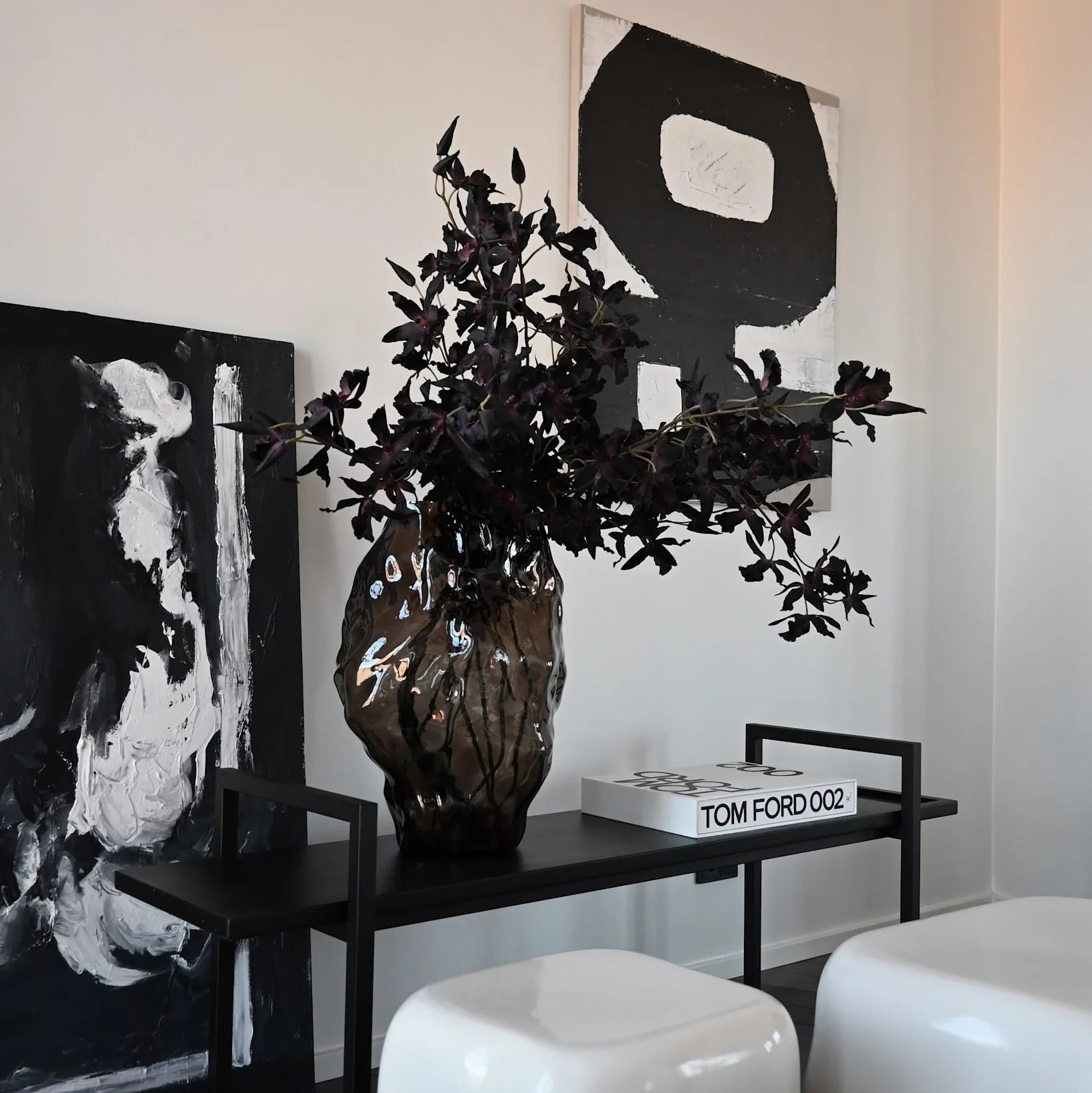 Każdy egzemplarz jest unikatowy, a jego krystaliczna przejrzystość wprowadza do wnętrza nastrojową głębię i subtelną elegancję. Wazon Katachi doskonale sprawdza się zarówno solo, jako dekoracyjny obiekt, jak i w zestawieniu z innymi rozmiarami kolekcji, dodając wnętrzom elegancki ruch i harmonię. Idealny do salonu, jadalni czy przestrzeni biurowej, łącząc wysmakowany design z ponadczasową estetyką Wabi-Sabi.